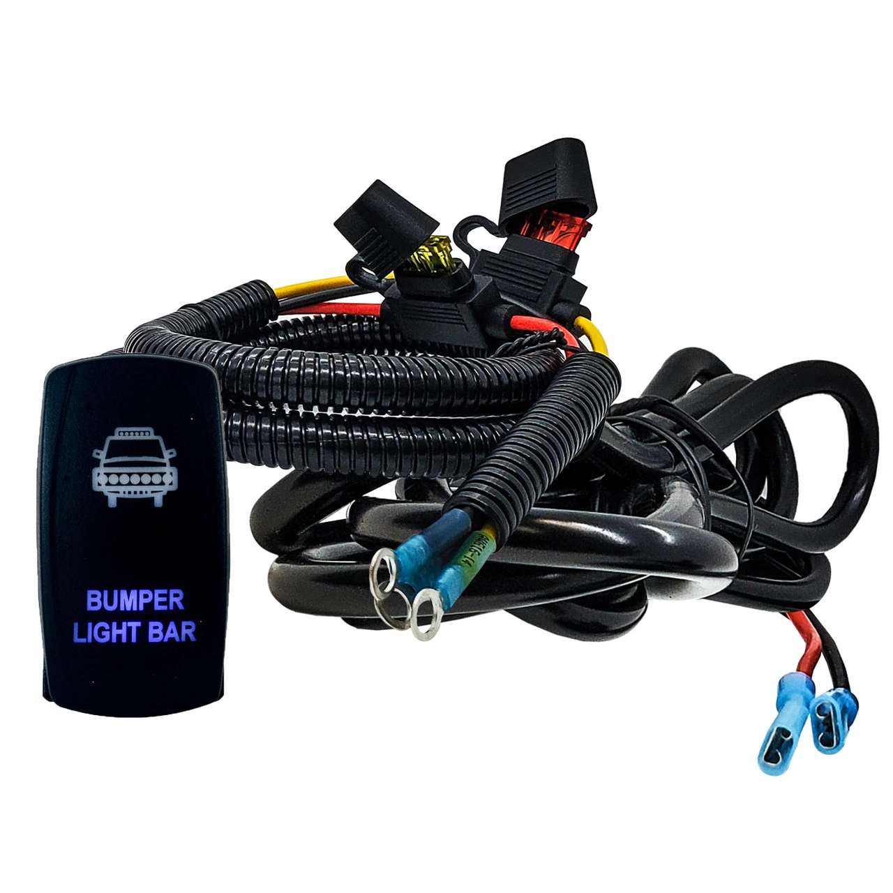 - On/Off LED Bumper Lightbar rocker switch included. Blue LED backlit. 20 Amp 12-Volt 4-PIN SPST Rocker Switch.