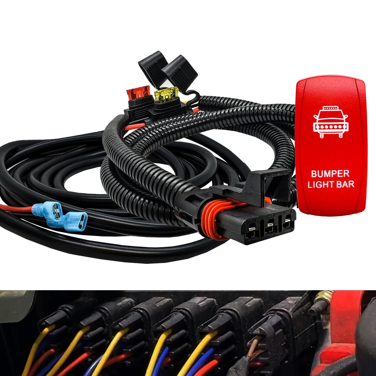 - Laser-etched On/Off BUMPER LIGHT BAR red rocker switch is included. 20 Amp, 12-Volt, 4-PIN. Rocker switch can handle up to 240W.
