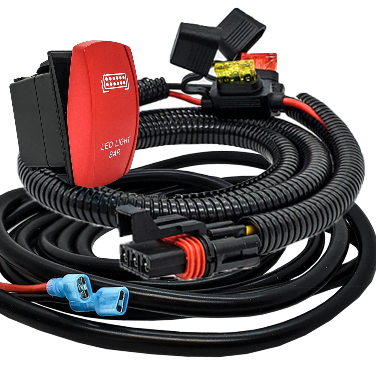 - Laser-etched On/Off LED LIGHT BAR red rocker switch is included. 20 Amp, 12-Volt, 4-PIN. Rocker switch can handle up to 240W.
