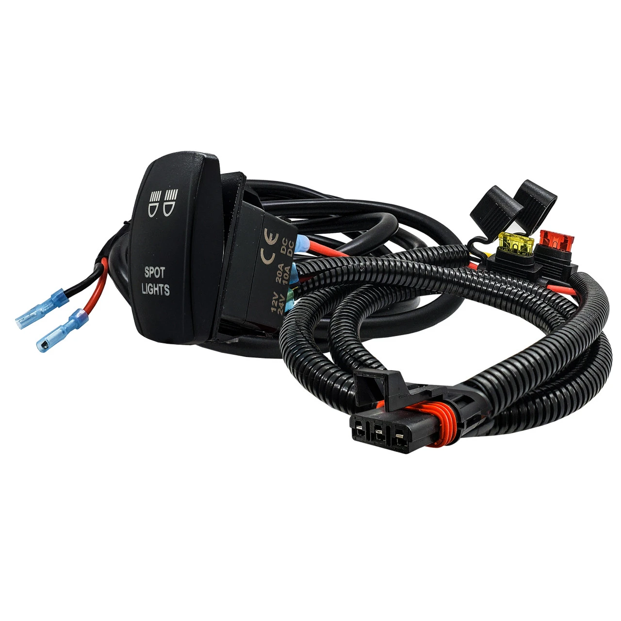 - Spot Lights On/off rocker switch included. Blue LED backlit. 20 Amp 12-Volt 5-PIN SPST ON/OFF Rocker Switch.