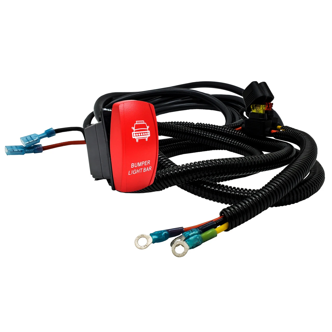 - Laser-etched On/Off BUMPER LIGHT BAR red rocker switch is included. 20 Amp, 12-Volt, 4-PIN. Rocker switch can handle up to 240W.