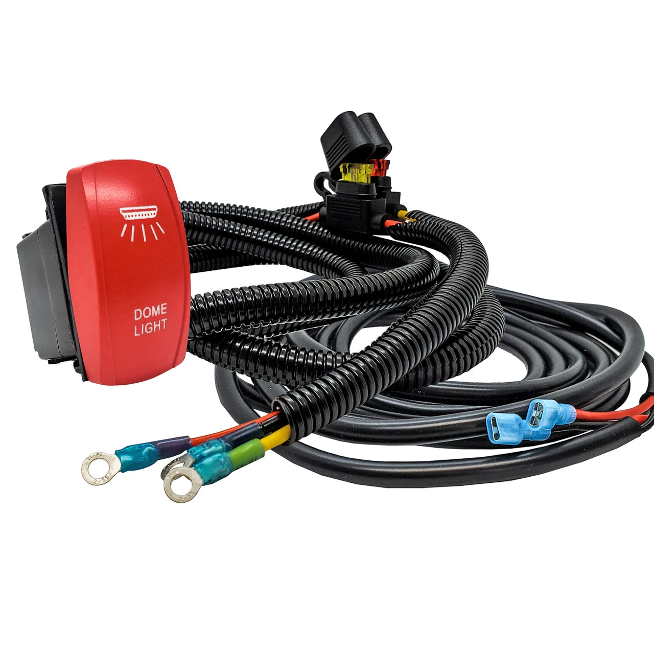 - Laser-etched On/Off DOME LIGHTS red rocker switch is included. 20 Amp, 12-Volt, 4-PIN. Rocker switch can handle up to 240W.
