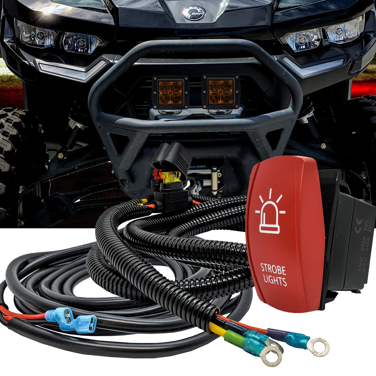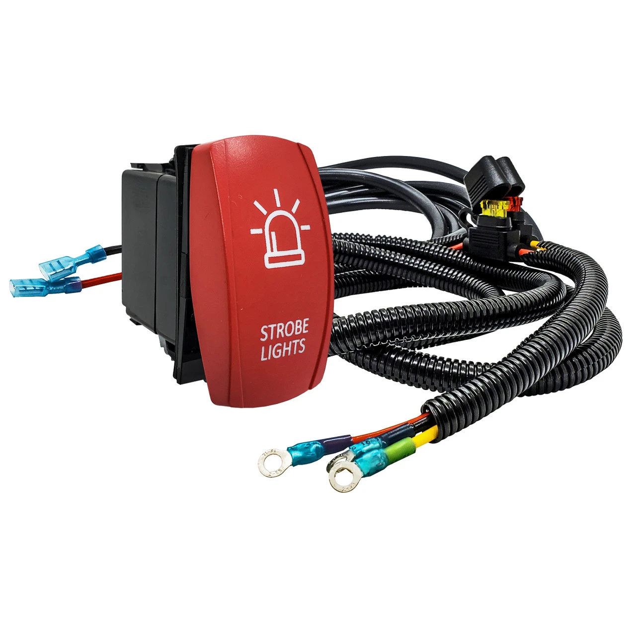 Say goodbye to complex setups – simply connect your strobe lights and you’re ready to conquer the trails with enhanced visibility. The red rocker switch is compatible with the in-dash rocker switch panel.