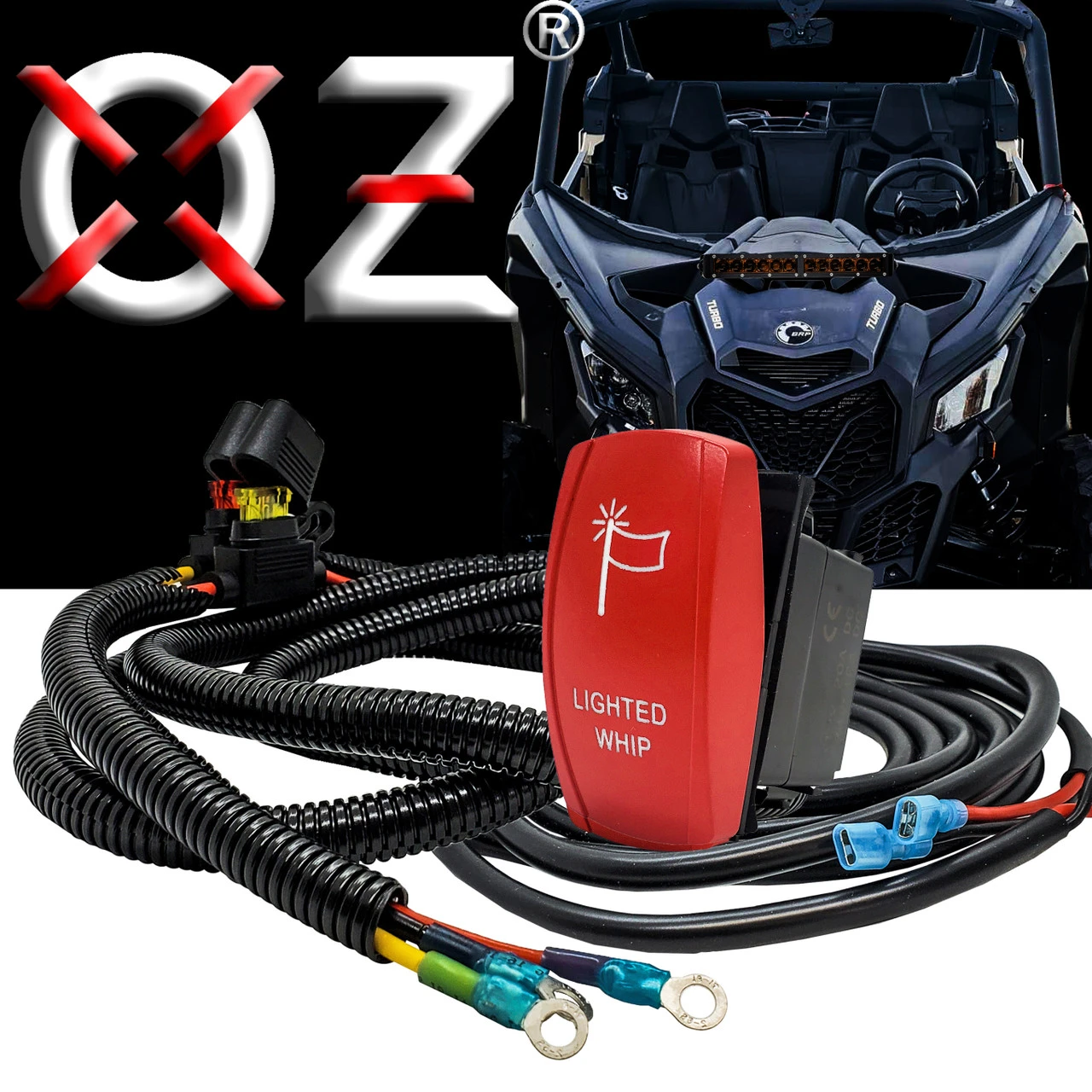 OZ-USA 10ft. Plug and Play Power Bus Bar Wire Kit with Laser-etched LIGHTED WHIP On/Off Red Rocker Switch – the perfect synergy of convenience and functionality designed exclusively for your UTV. Compatible with Can-Am Maverick X3 Max RS Turbo RR, Sport, Trail, Commander and Defender. 10ft. AWG#14 Tin-Coated copper wire with silicon jacket and a 6ft. AWG #14 wire harness with a 10A fuse for ignition, a 20A fuse for constant power and a busbar power terminal rings integrated with our 4-Pin Rear Lights red rocker switch. The eye-catching laser-etched red cover plate will stand out on your rocker switch panel even in low-light conditions.