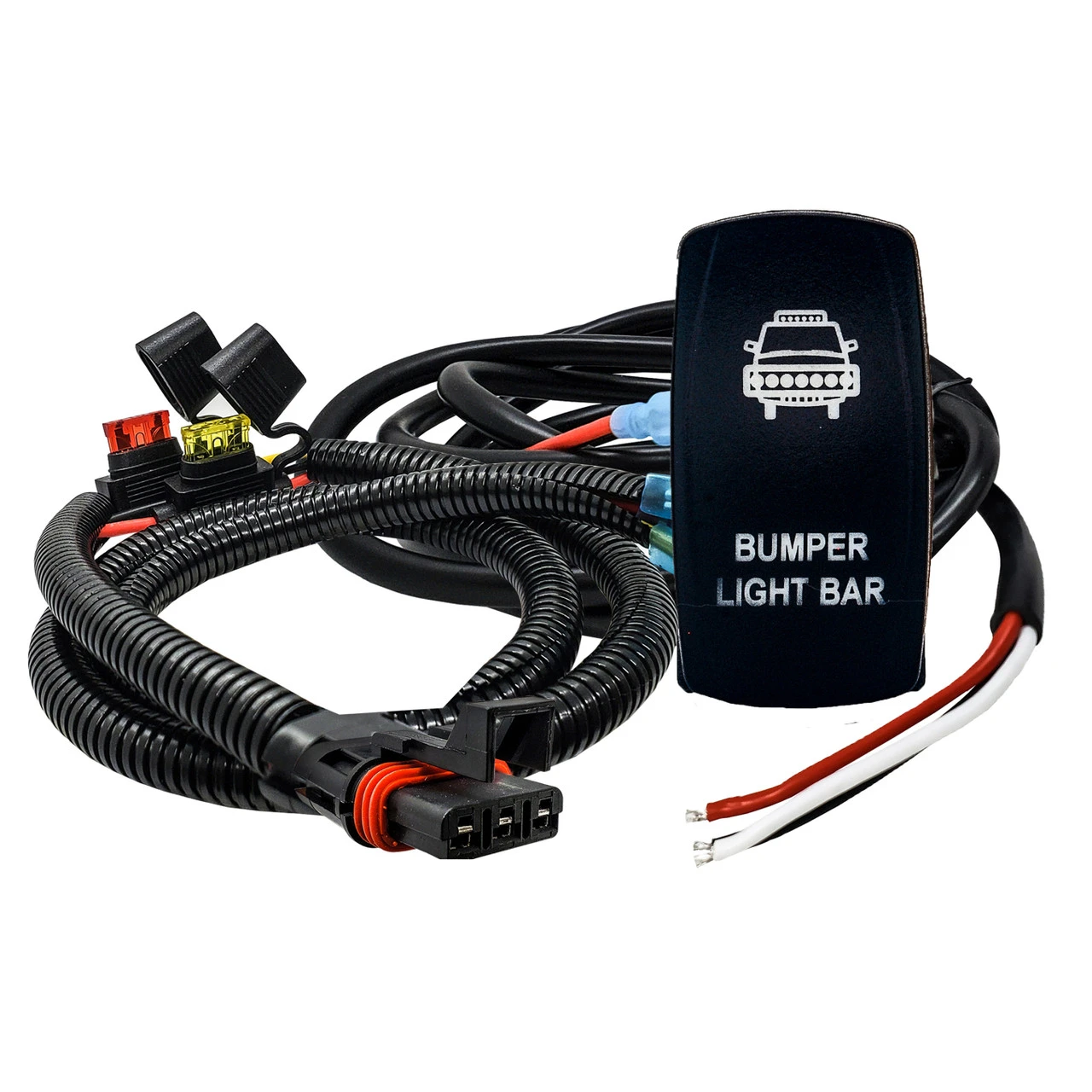 - Laser-Etched BUMPER LIGHT BAR On/Off rocker switch with blue LED backlit. 20 Amp 12-Volt 4-PIN. Compatible with the Polaris rocker switch panel.