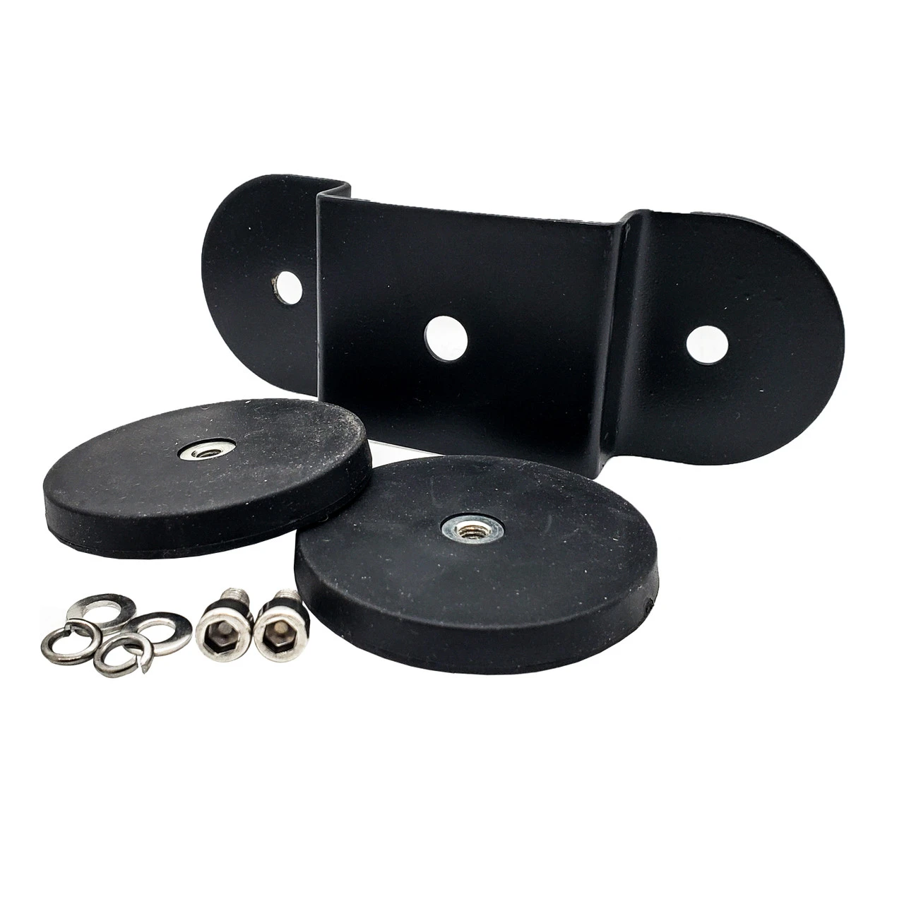 OZ-USA® Single mounting bracket with magnetic base for trucks, trailers, RV, heavy equipment vehicles. These brackets are used to hold auxiliary lightings such as Camera system, LED light bars, POD lights, or any work lights on a temporary basis. The base of the brackets is made of a powerful Neodymium magnet disc with a strong suction power of 40 lbs. per magnet. Each magnet is rubber-coated to prevent scratching of the surface. This magnet base bracket holder can be used for all off-roading lights or any LED work lights. It is strong enough to withstand a wind velocity of 80MPH.