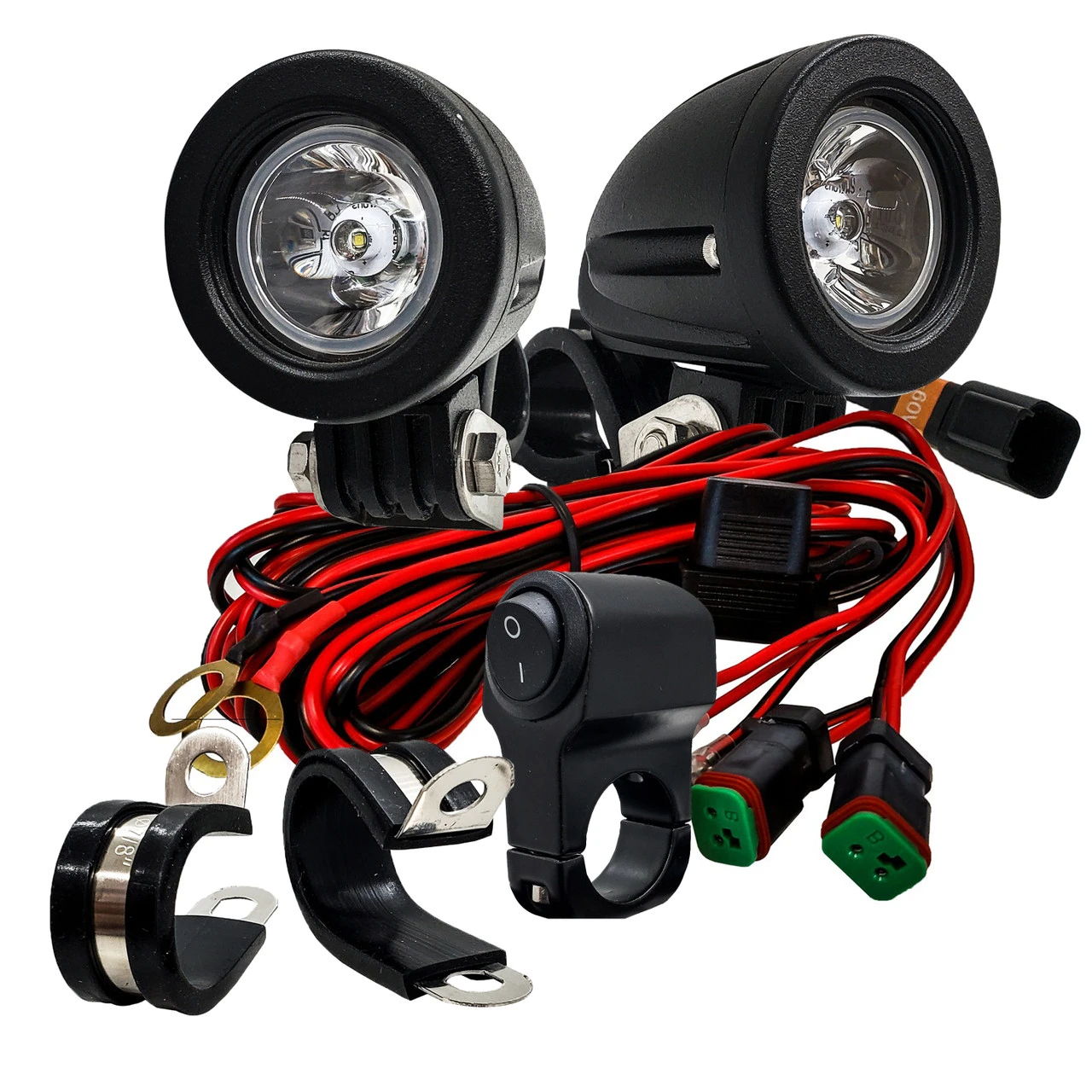 Our mini trail LED lights are the best auxiliary lights for your motorcycle. Compact design, high light output, and low power draw make them perfect for all kinds of motorcycles including dirt bikes, trail bikes, dual-sport adventure motorcycles, street motorcycles, cruisers, racers even ATVs. Standard halogen motorcycle headlight bulbs will use 35-55 watts. Our mini trail lights only use 20w per pair but generate 3-4 times more light than your standard halogen headlights. The compact design is roughly the same size as motorcycle turn signals. They are perfect to install on various locations on your bike including, forks, turn signal brackets, crash bars, and fairings. A low power draw makes it compatible with all motorcycle stators without draining your battery. Ultra-bright LEDs will also increase your visibility to others during the daytime to keep you safer.