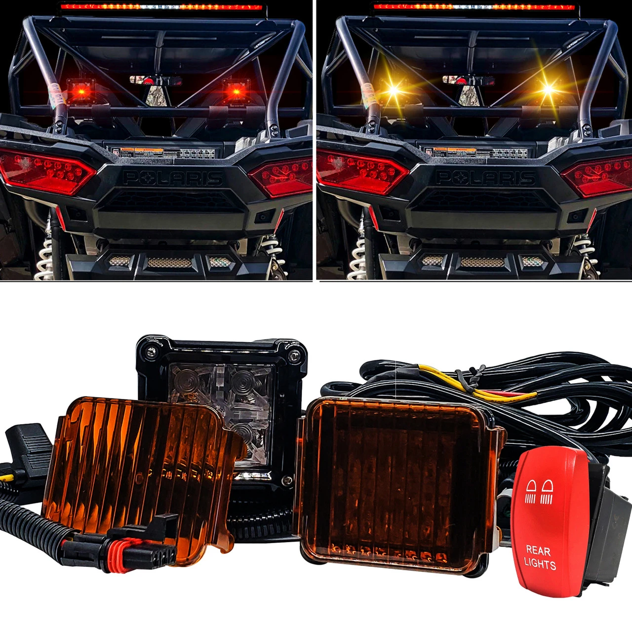 Experience the ease of installation with a plug-and-play design that seamlessly integrates into your factory Pulse power bus bar distribution block. The kit includes one pair of 3″ Dual Color Red & White LED Pod Lights with amber lens cover, creating the amber color chase light for dust and providing both functionality and a visually striking appearance.