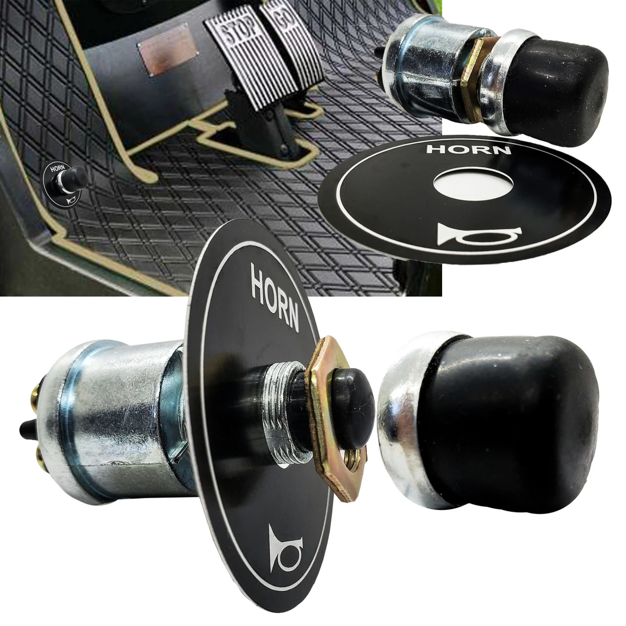 - Momentary Horn floor-mounted step-on button switch with aluminum backing plate is included.