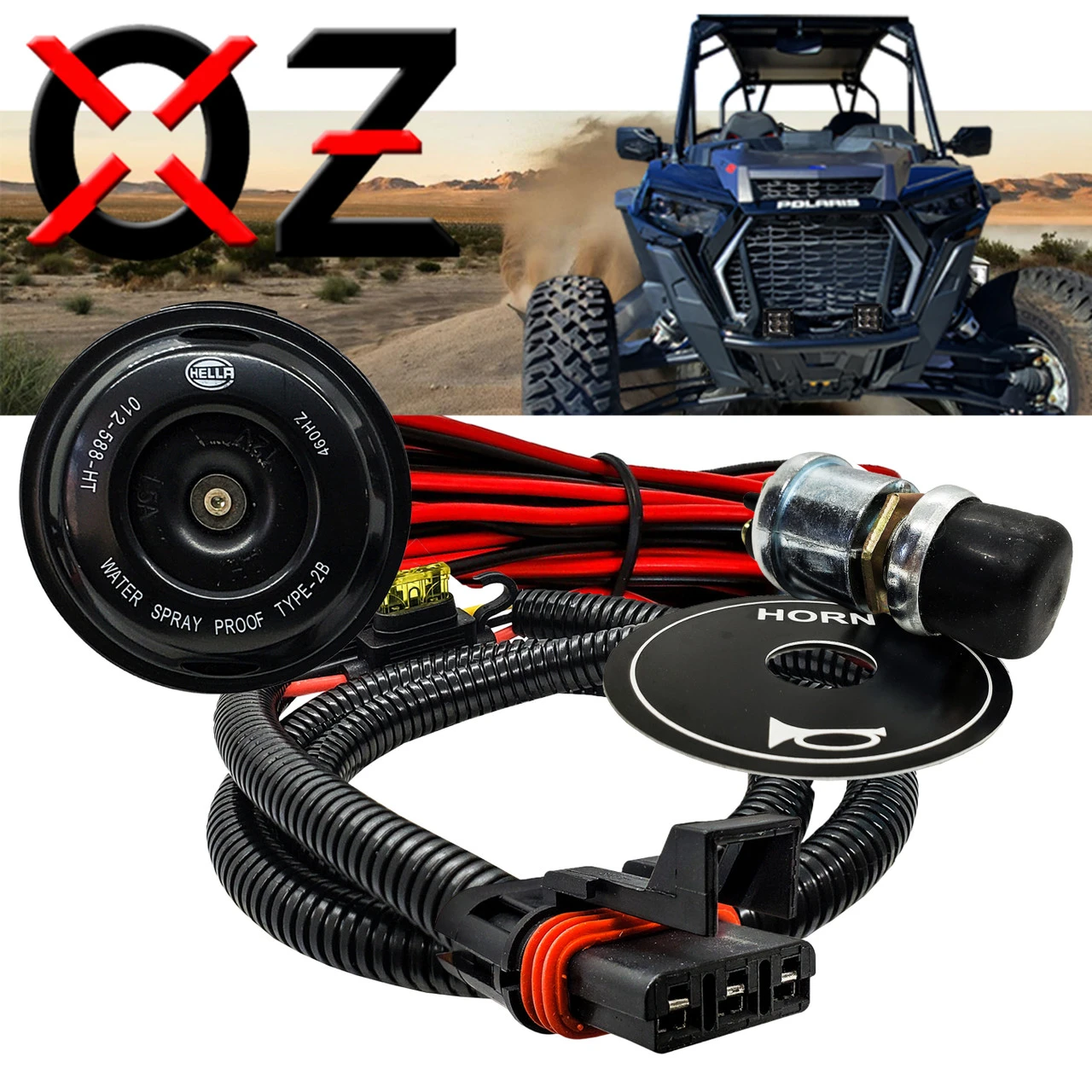 Revolutionize your off-road experience with the OZ-USA Off-Road Traffic Blaster! Unleash the power of a Hella horn combined with a seamlessly integrated power bus bar plug wire harness kit, meticulously designed to harmonize with 2018-2023 Polaris Ranger XP 1000 Pulse Plugs, RZR RS1/Pro Pulse Plugs, and 2019-2023 Polaris General 1000 Pulse Plugs.