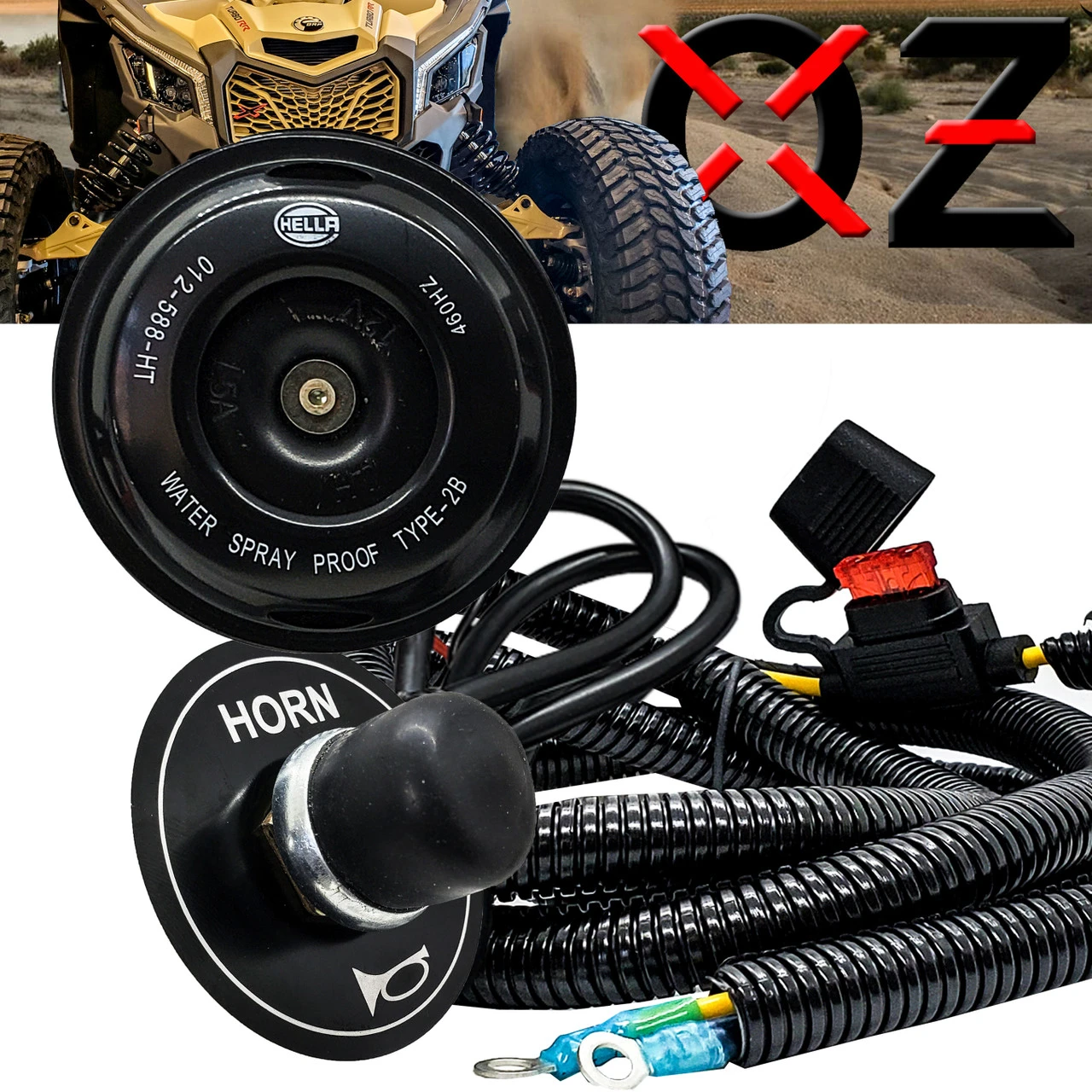 Revolutionize your off-road experience with the OZ-USA Off-Road Traffic Blaster! Unleash the power of a Hella horn combined with a seamlessly integrated power bus bar plug wire harness kit, meticulously designed to harmonize with 2018-2023 Can-Am Maverick X3 Max RS Turbo RR, Sport, Trail, Commander and Defender.