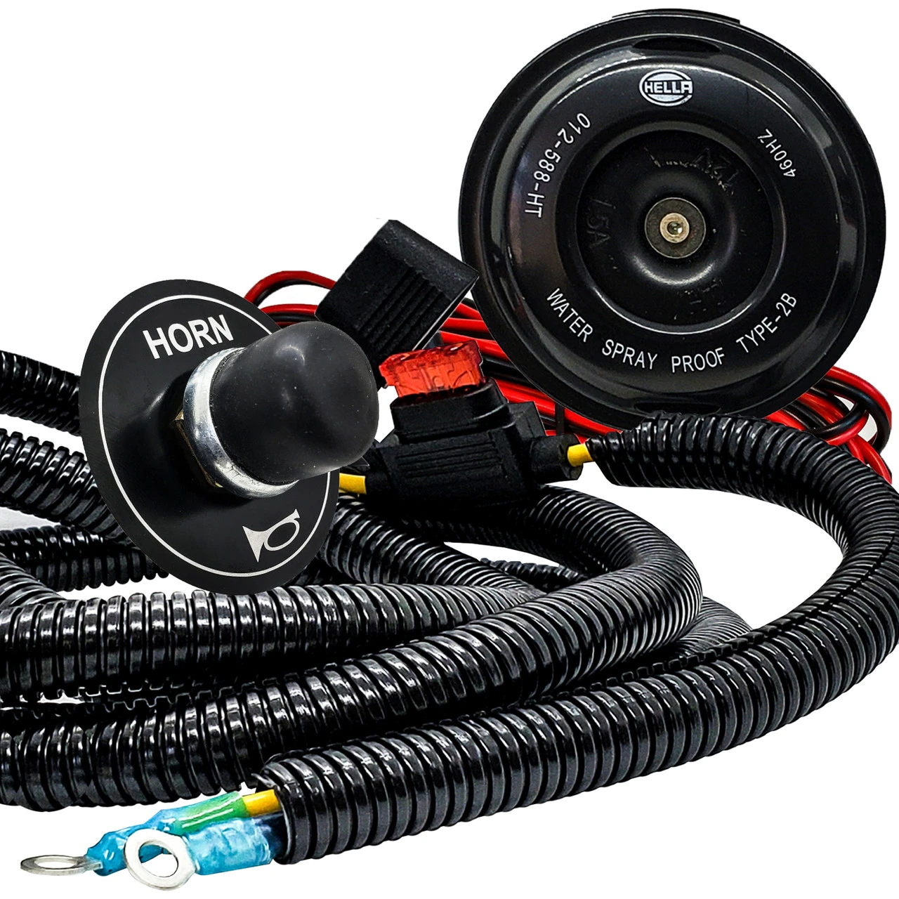 - 3″ Round Hella disc horn is also included. Ideal for off-road use. Hella UTV horn produces a penetrating loud sound at 108 decibel.