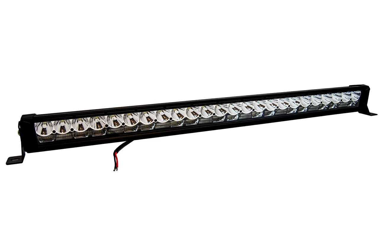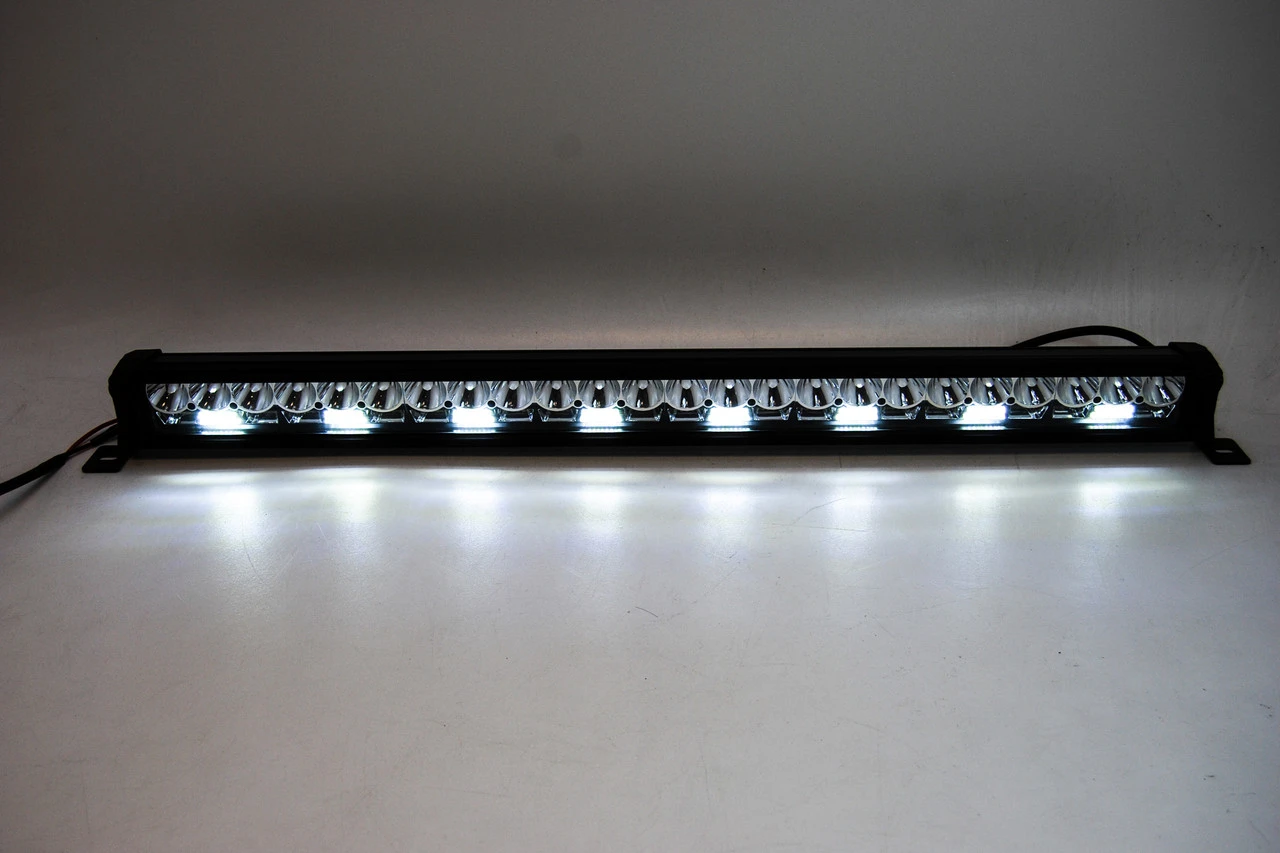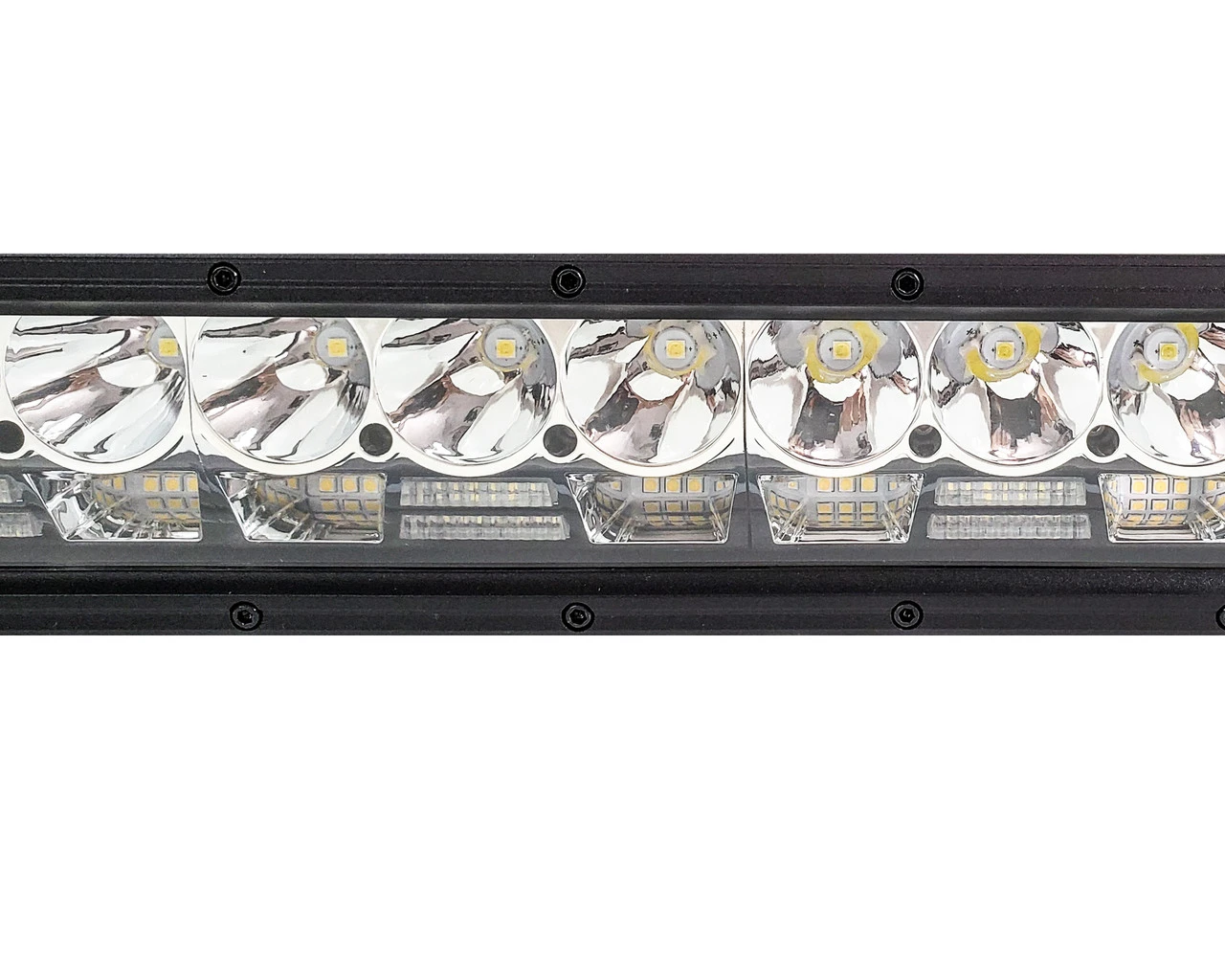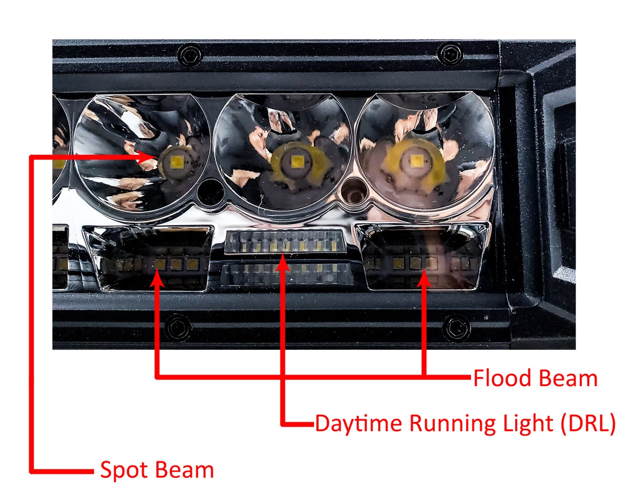 A new light bar designed for maximum visibility with its all 30° spot beam pattern on the top row for maximum beam distance and a combination 110° beam angle flood beam pattern for wider ground illumination and a daytime running light function (DRL). This newly designed light bar is powered by a 5 watt Osram LED Chip and a 3 watt Cree LED for the Flood beam. This high-intensity LED light bar provides superb visibility both on the ground and farther ahead.
