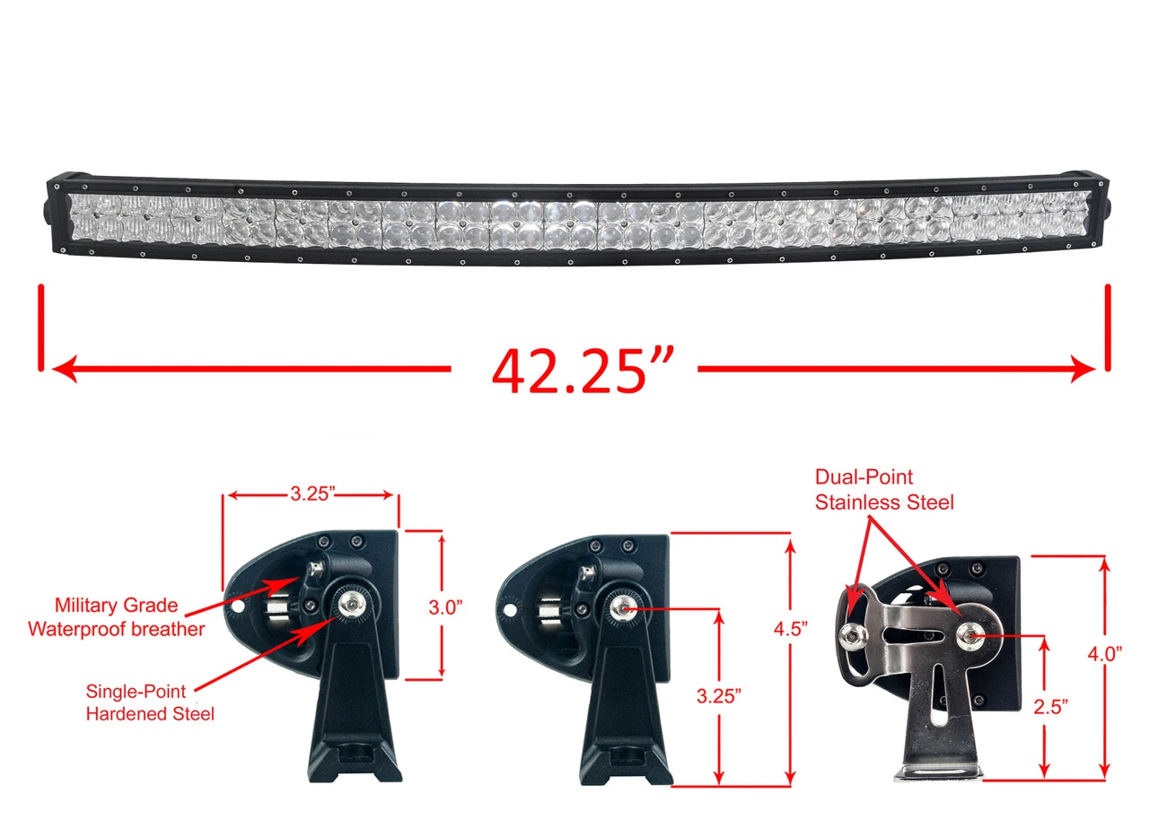 - OZ-USA® 42″ Curved 4D High output LED light bar 240w dual row combo beam (Spot + Flood)