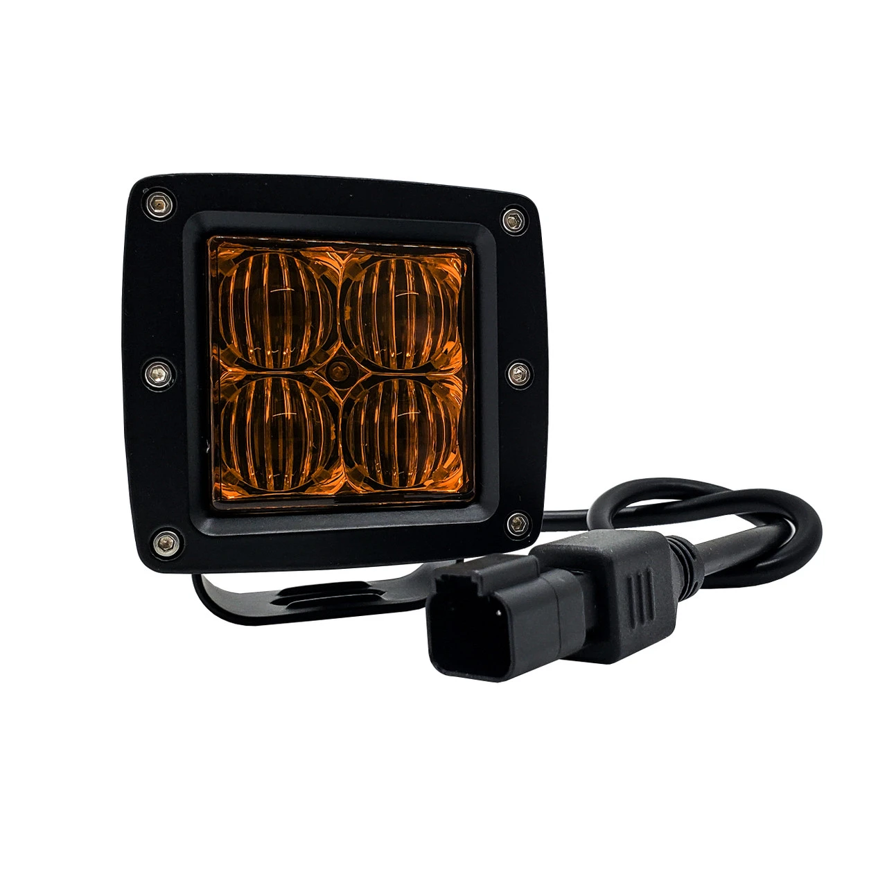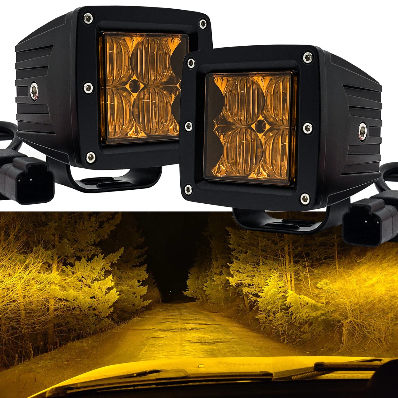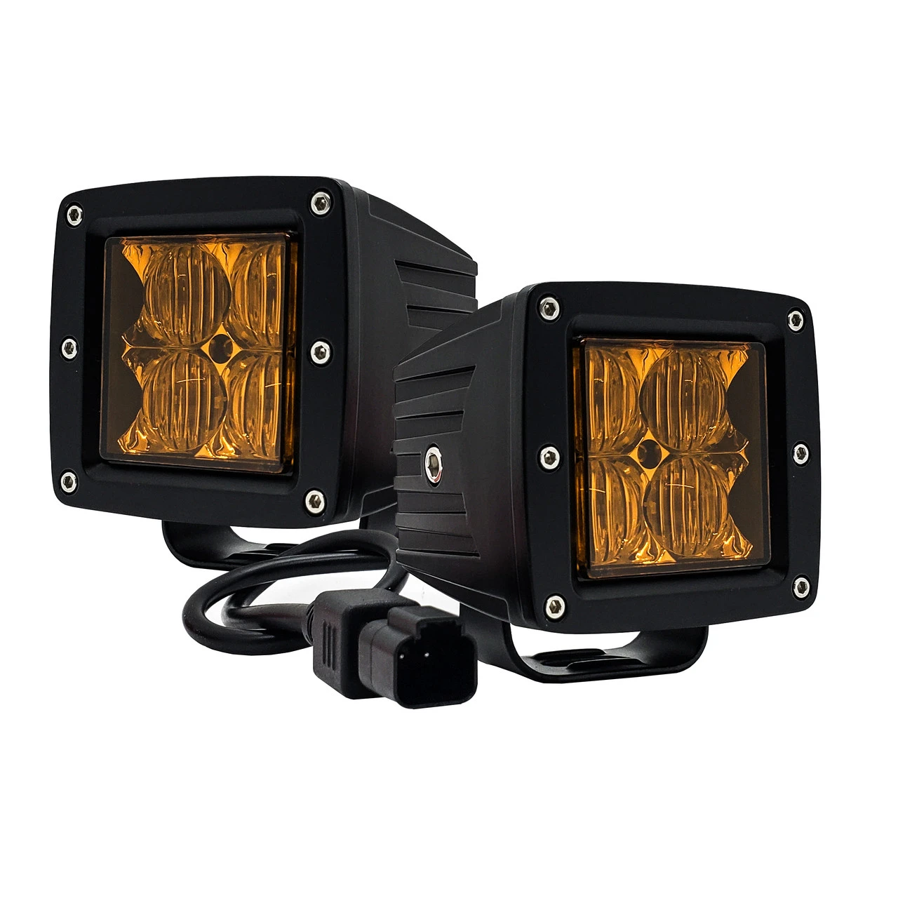 - One pair, 4D Series Amber LED pod lights. Flood beam.