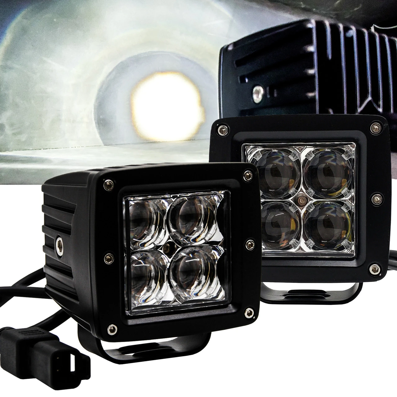 The new re-designed 4D-Series LED pod lights with a higher intensity LED chip for brighter and longer-lasting off-road lights in the market. Utilizing a special black PC circuit board for a blacked-out look. A perfect lighting solution to light up the trail. Great for, off-road vehicles, racing applications, construction vehicles, farm vehicles, marine applications.