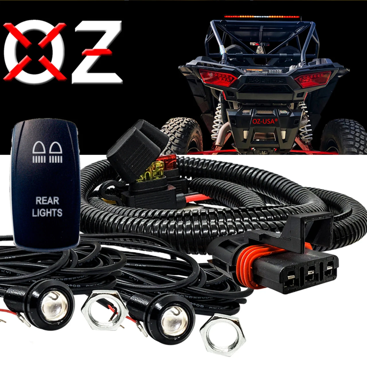 OZ-USA Plug and Play 1 Pair 5/8-Inch Amber LED Bolt Beam Rear Chase Light with Pulse Power Bus Bar Plug Wire Kit and On/Off Rocker Switch. This high-performance lighting solution is specifically designed for the 2018-2023 Polaris Ranger XP 1000 Pulse Plugs, RZR RS1/Pro Pulse Plugs, and 2019-2023 Polaris General 1000 Pulse Plugs.