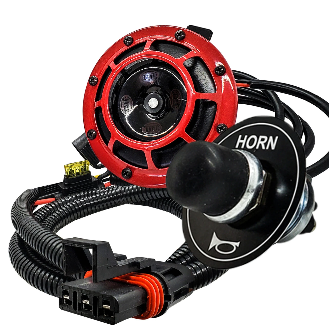 - 5″ Round Hella disc horn with distinctive red grill also included. Ideal for off-road use. Hella UTV horn produces a penetrating loud sound at 118 decibel.