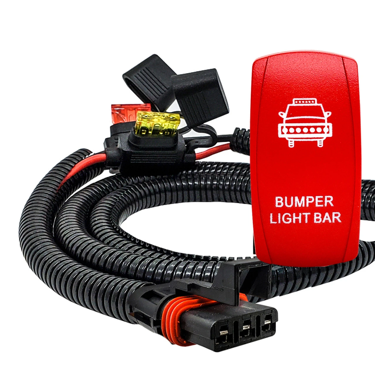 - Laser-etched On/Off BUMPER LIGHT BAR red rocker switch is included. 20 Amp, 12-Volt, 4-PIN. Rocker switch can handle up to 240W.