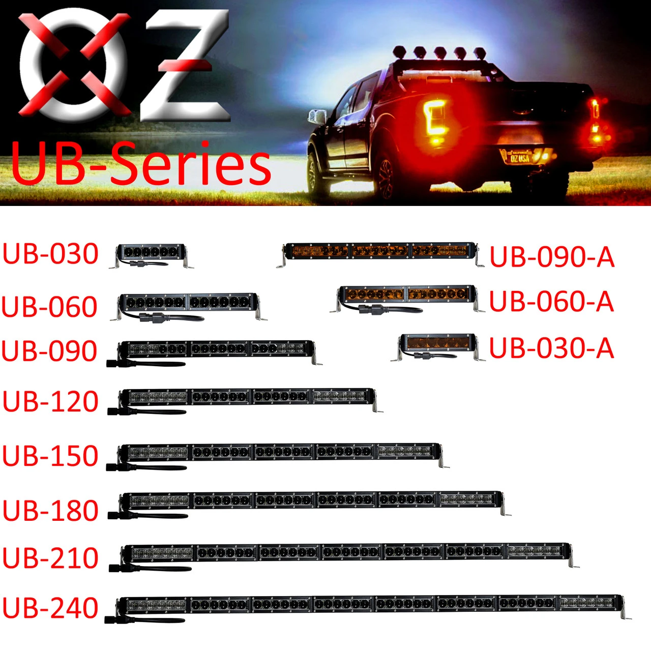 The UB Series LED light bar provides a low-profile lighting solution to fit almost any vehicles. Combining the high-intensity LED chip and hyper optic lens, our UB Series LED light bar projects a narrow beam for longer beam distance and higher light output than the traditional reflector lens LED light bar. The UB-Series LED light bars are designed for a wide variety of applications. The impact-resistant lens is interchangeable. Change it up to suit your application.