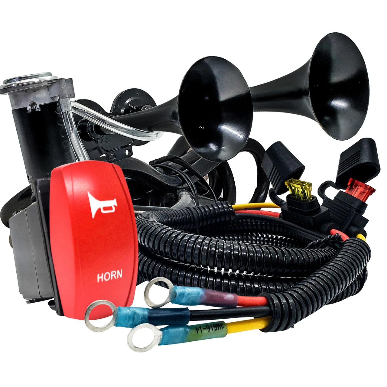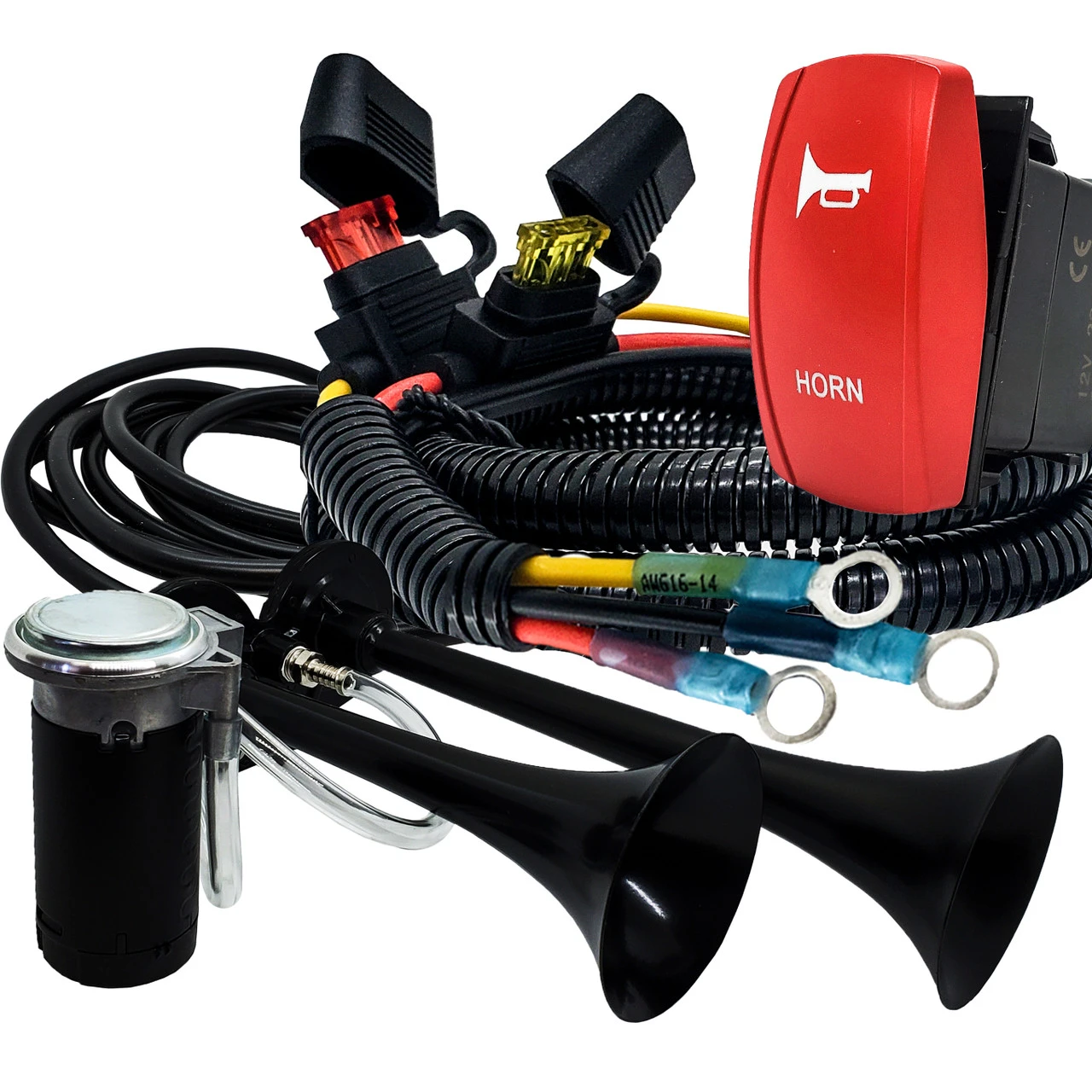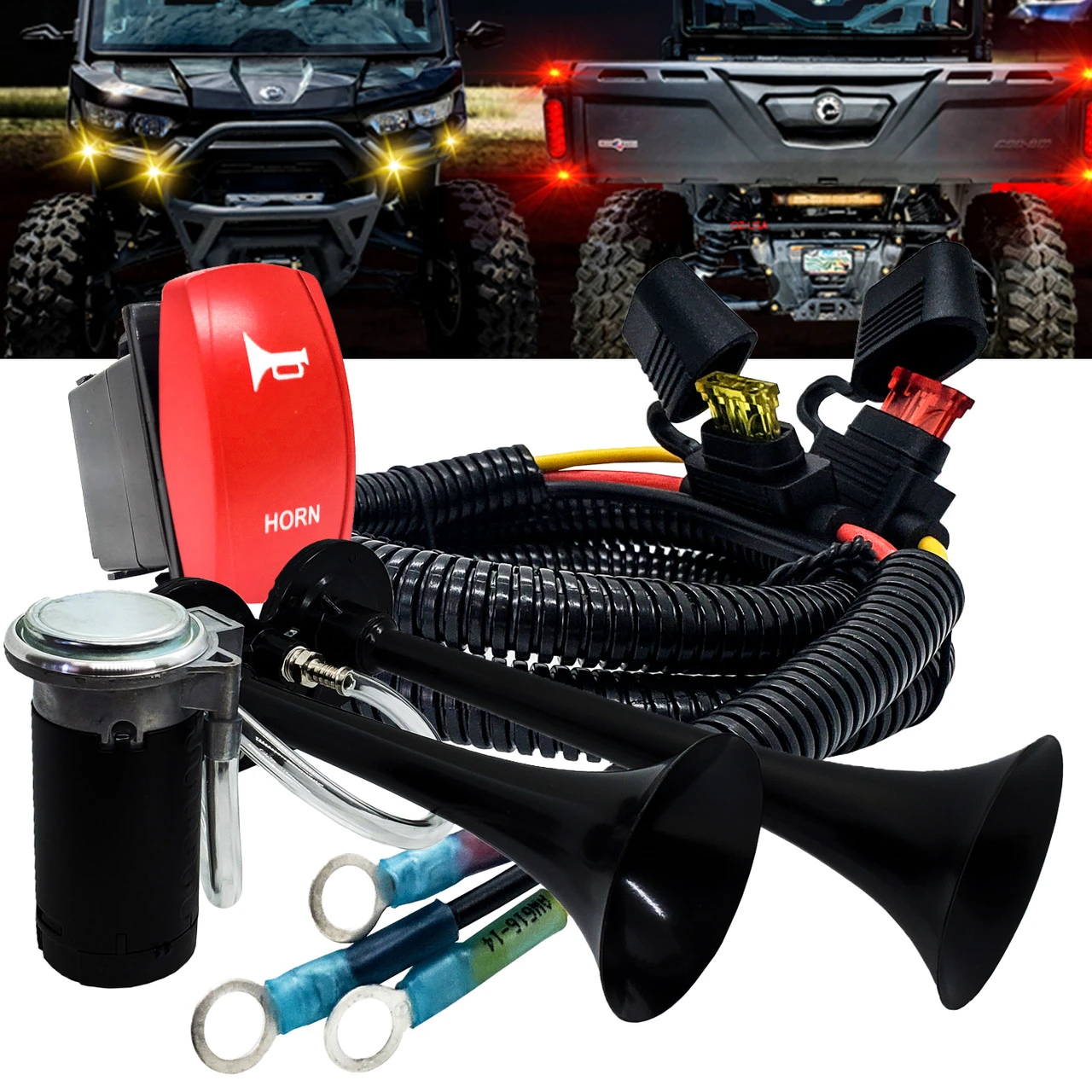 - Effortless installation. No need for complex installations that eat away your precious off-road time. Our Air Horn Kit is designed for a seamless plug-and-play experience, directly connecting to the factory busbar or power distribution block. Bid farewell to the hassle of cutting or splicing wires.