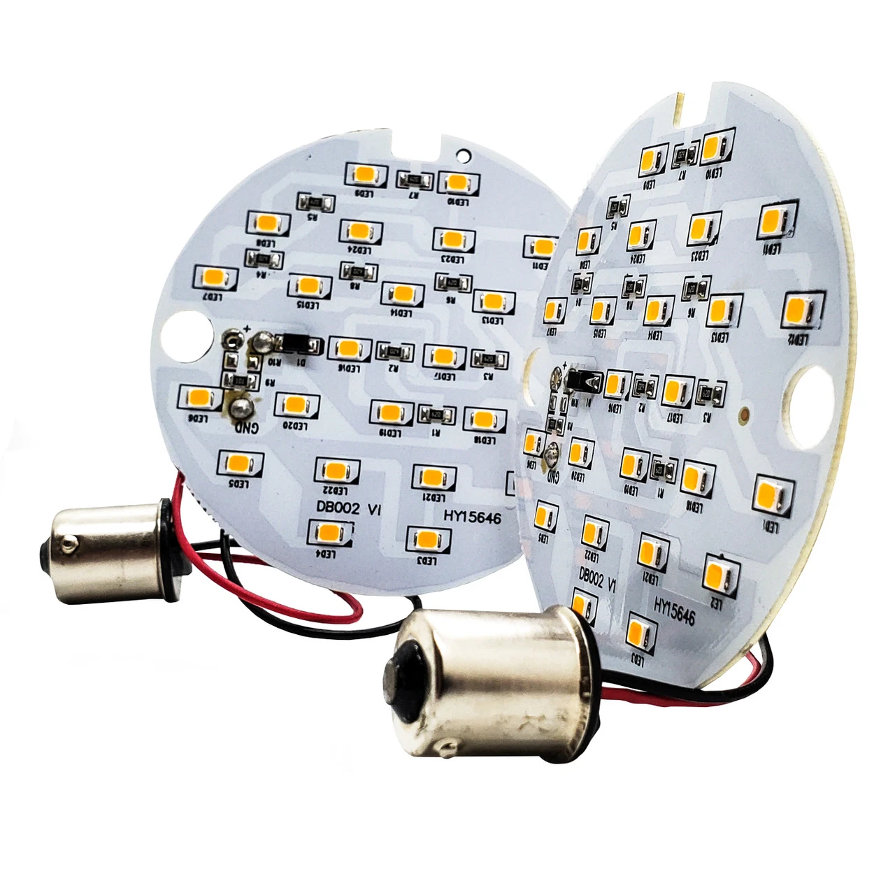 - Package contains 2 LED boards: 2x 1156 rear. Plug & Play, uses existing lens and bucket. LED will light up Amber which makes it compatible with smoke, red, clear and amber lenses.