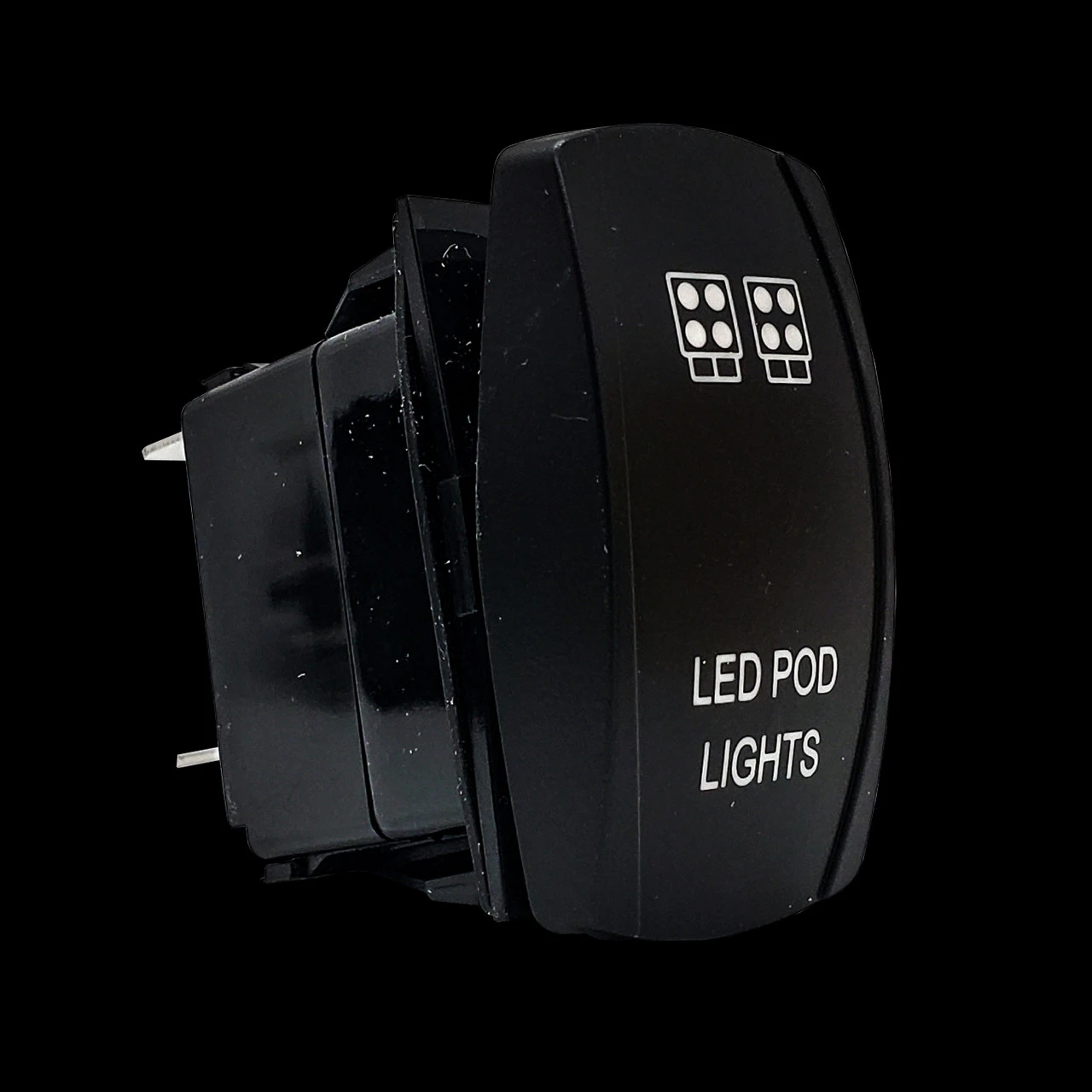 - Includes a Pod Light On/Off 20 Amp 12-Volt 4-PIN SPST rocker switch with blue LED backlight for easy control and visibility in low-light conditions. Rocker switch can handle up to 240W.