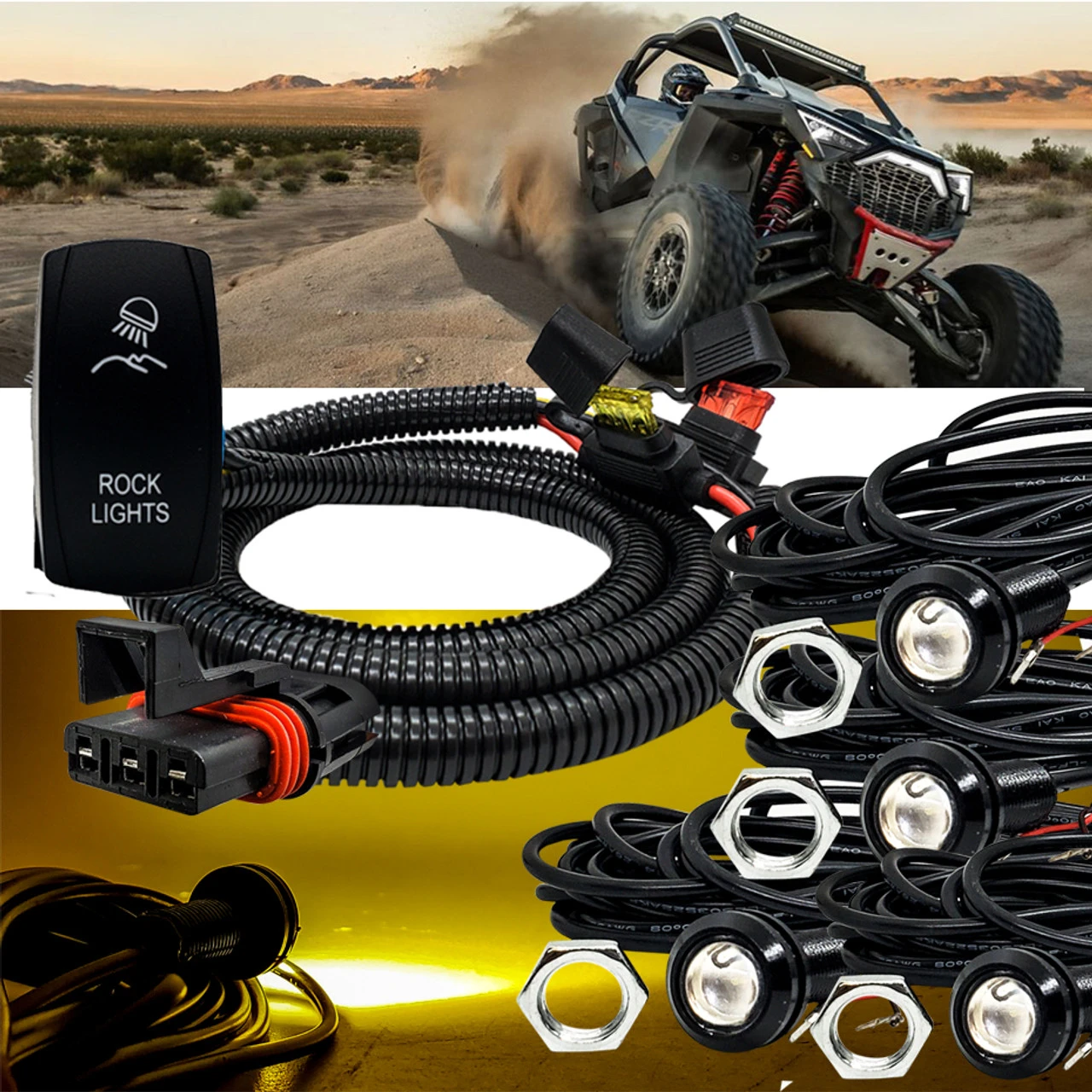 OZ-USA complete rock light kit connects directly to your Polaris Pulse power busbar and includes 2 pairs of amber LEDs, rocker switch, and a pulse power plug. Everything is prewired and ready to install. The rock lights are 5/8-inch round 22mm bolt beam LED light. These High-intensity LEDs are highly visible in poor weather conditions. It increases your visibility on the road, enhancing safety for yourself and other motorists.