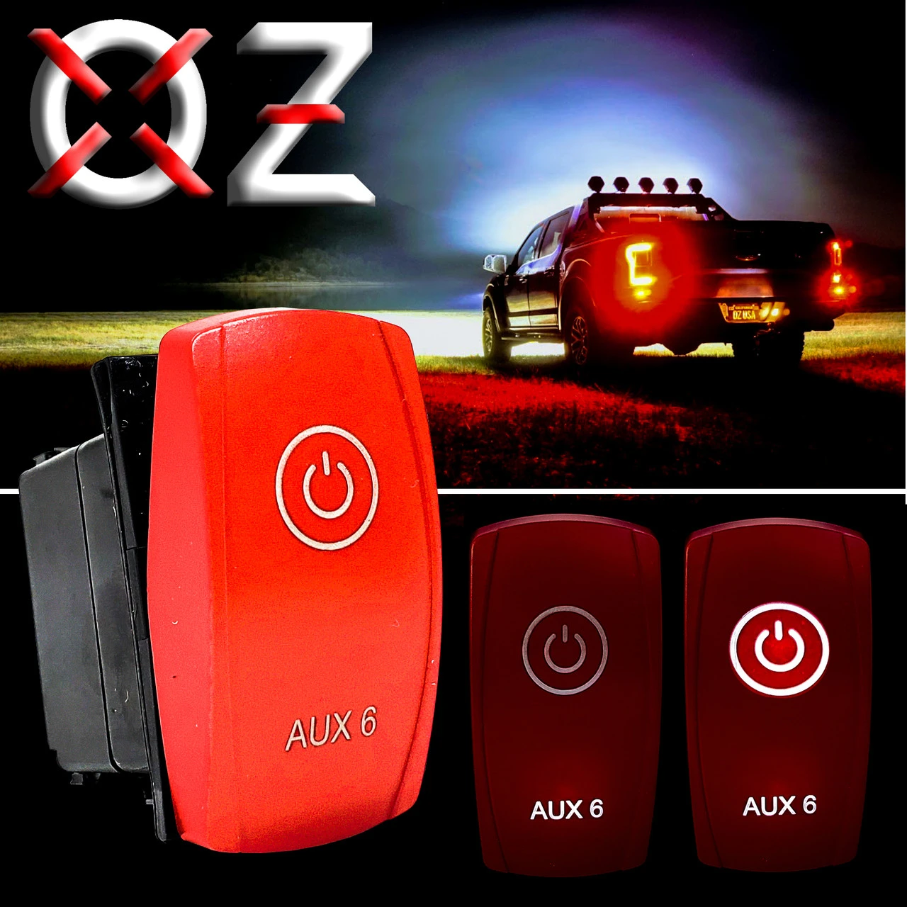 Introducing the OZ-USA Laser-Etched AUX 6 On/Off 4-Pin Red Rocker Switch – your go-to solution for a reliable and high-performance rocker switch designed to elevate your off-road adventures and vehicle customization projects. Crafted with precision and built to last, this versatile switch is tailored to meet the demands of various applications, making it an ideal choice for off-road vehicles, UTVs, trucks, RVs, side-by-sides, marine vessels, boats, golf carts, and heavy equipment vehicles.