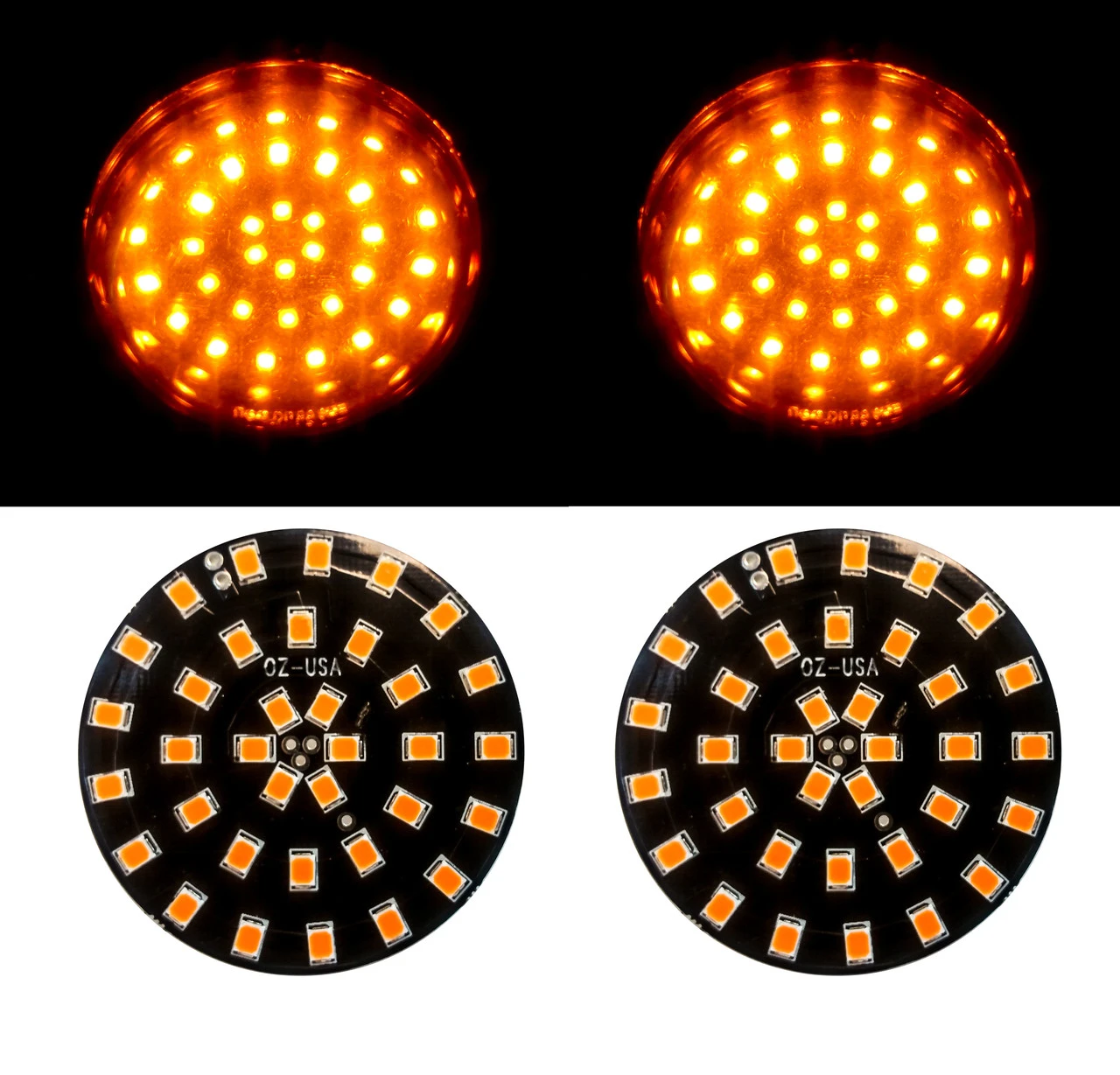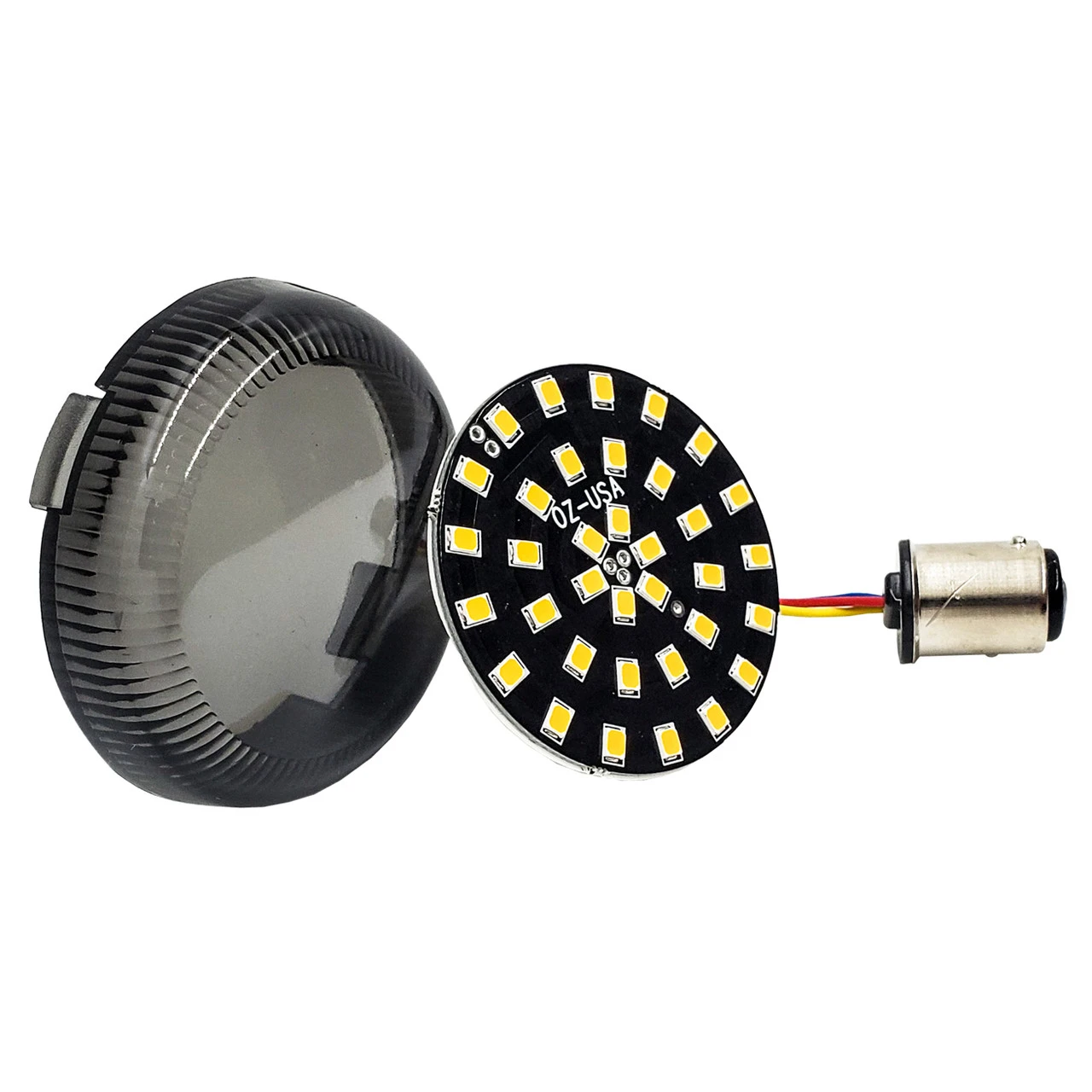 OZ-USA® Black out LED turn signal inserts with smoke lens for Harley motorcycles- Dual Function Turn Signal / Running light extremely bright with high output SMD chips.