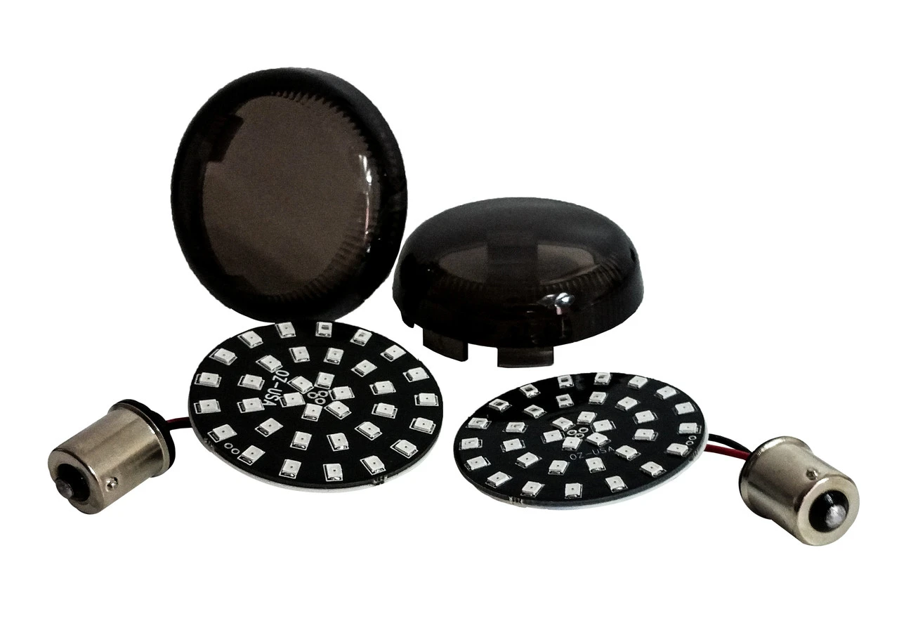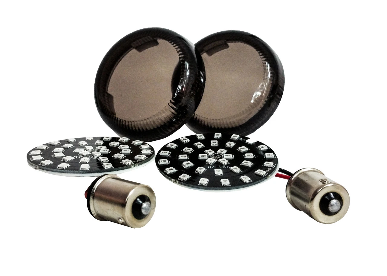 - OZ-USA® Black out Rear Red LED turn signal inserts with smoke lens for Harley motorcycles