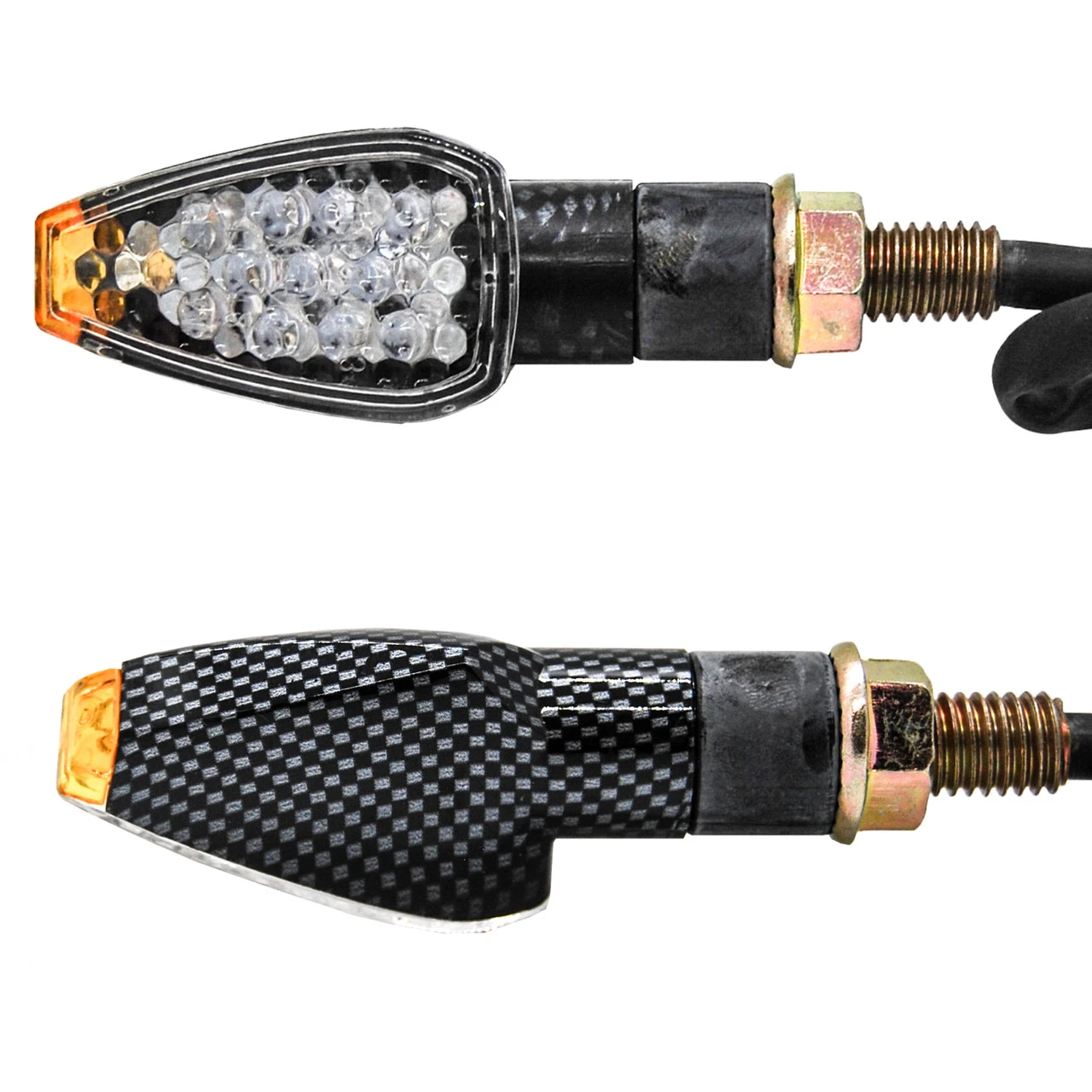 - 1 pair (2 pieces), brand new, Front or Rear LED turn signals for your motorcycle. Carbon look paint.