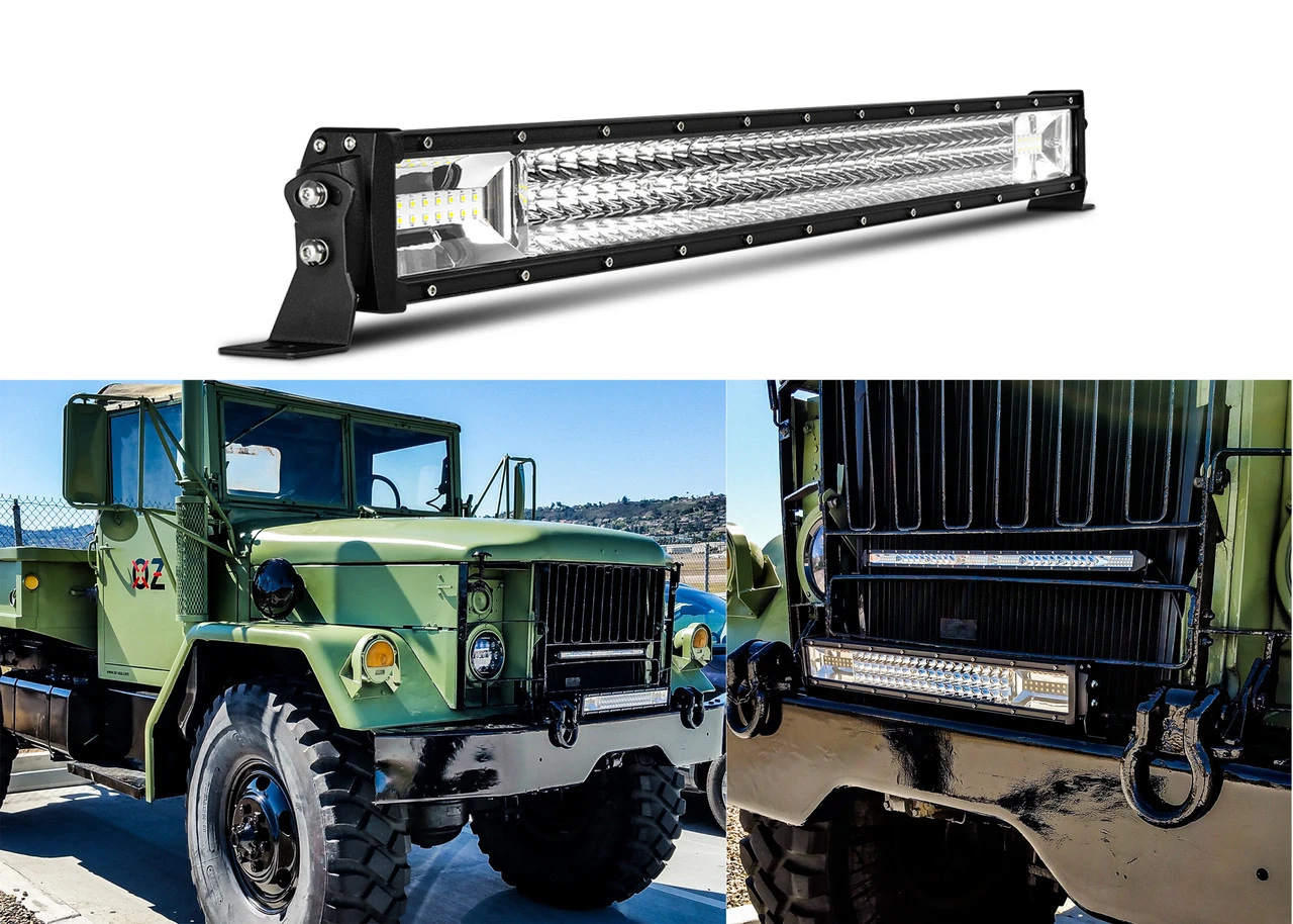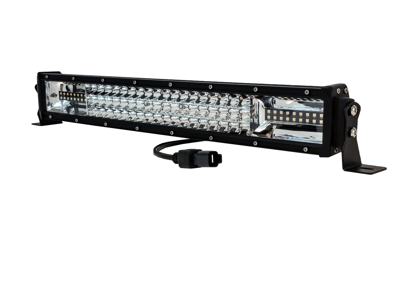 - 22″ OZ-USA® High Output Dual Color Changing Amber White LED light bar. Cycle through the functions with your on-off switch.