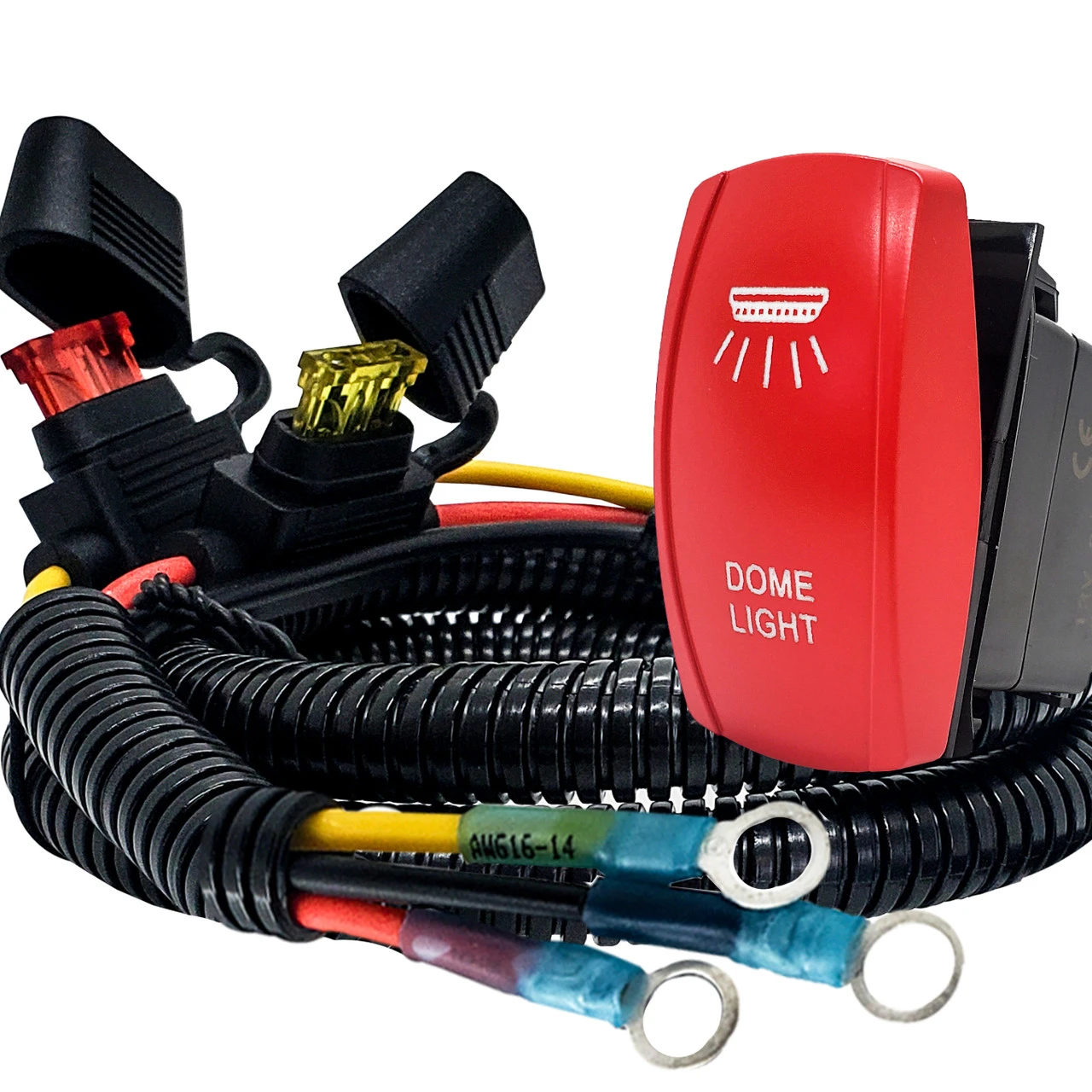 - DOME LIGHTS laser-etched symbol and vibrant red ON/OFF Rocker switch is included. White LED backlit. 20 Amp 12-Volt 4-PIN.