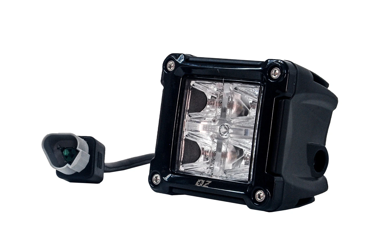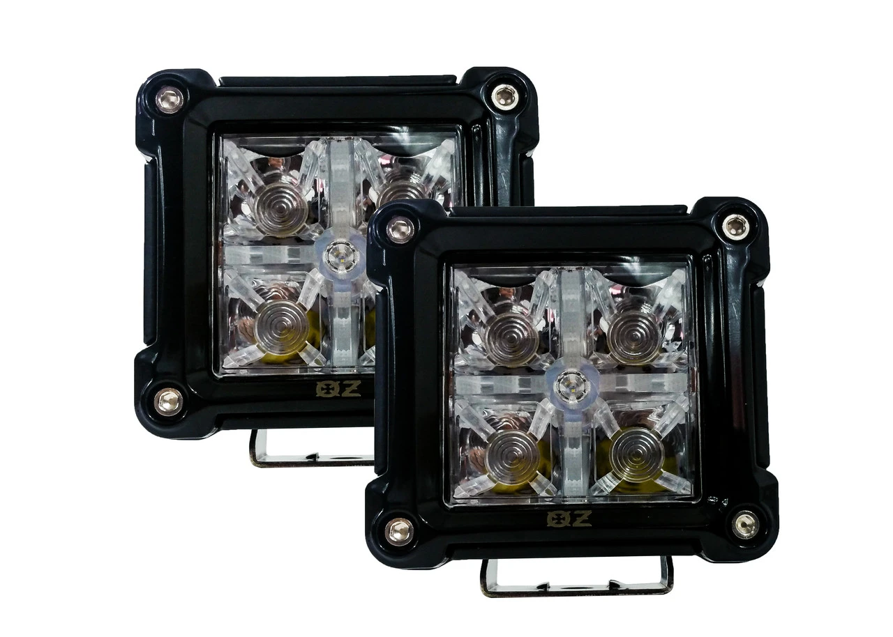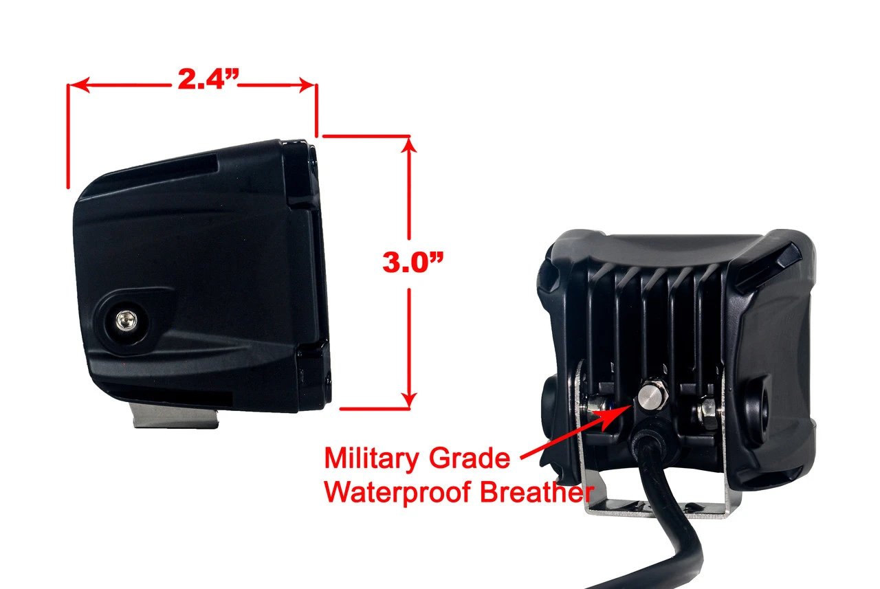 White LED spot beam cube lights with red DRL / Running light function. Great for reverse lights with red taillight function or any custom application. Will work on all 12v 24v truck, SUV, ATV, UTV applications.