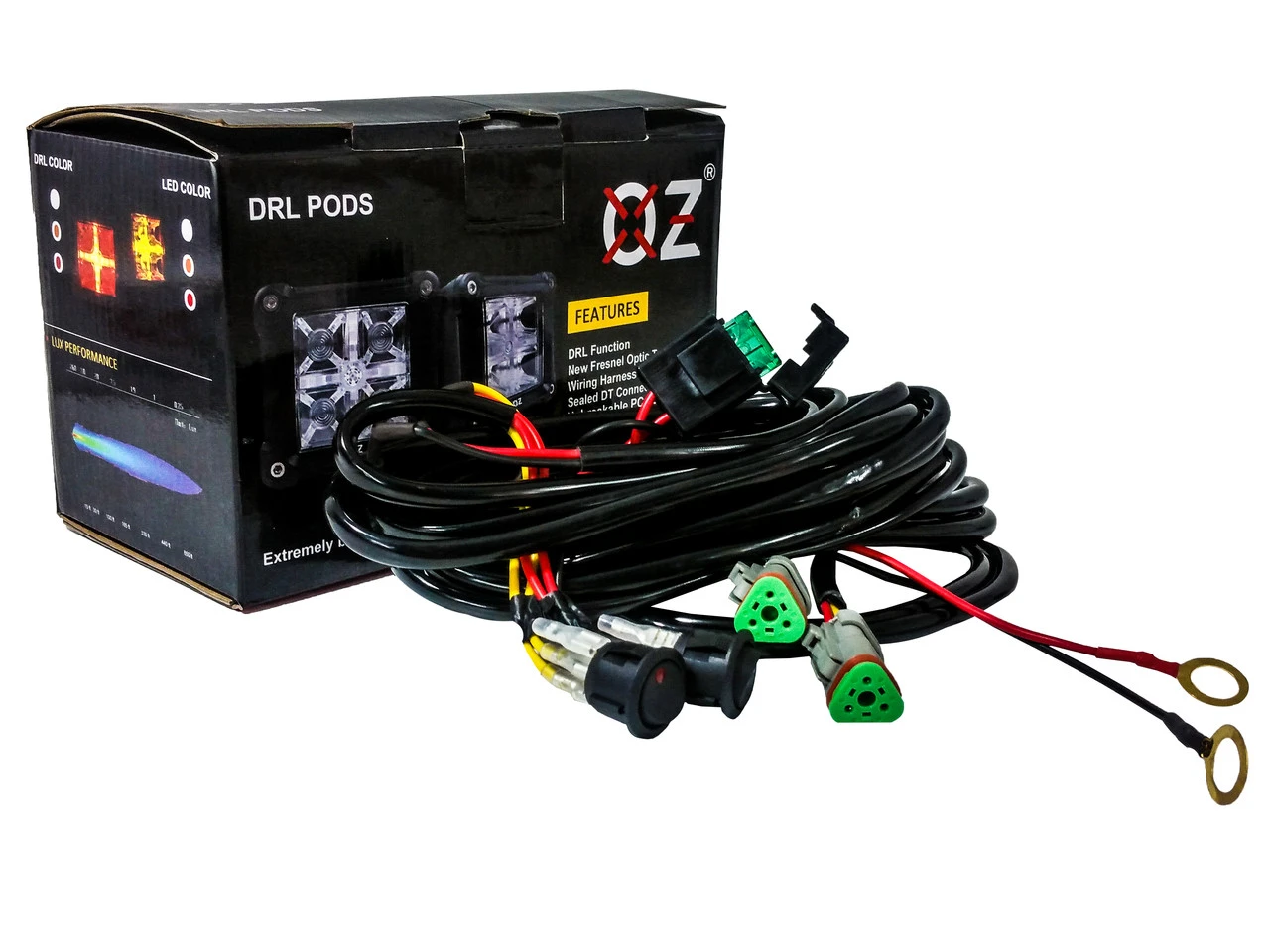 - Package Includes: Wiring harness with dual switch, 2 pcs. Diffused Lens cover, Mounting brackets and hardware.