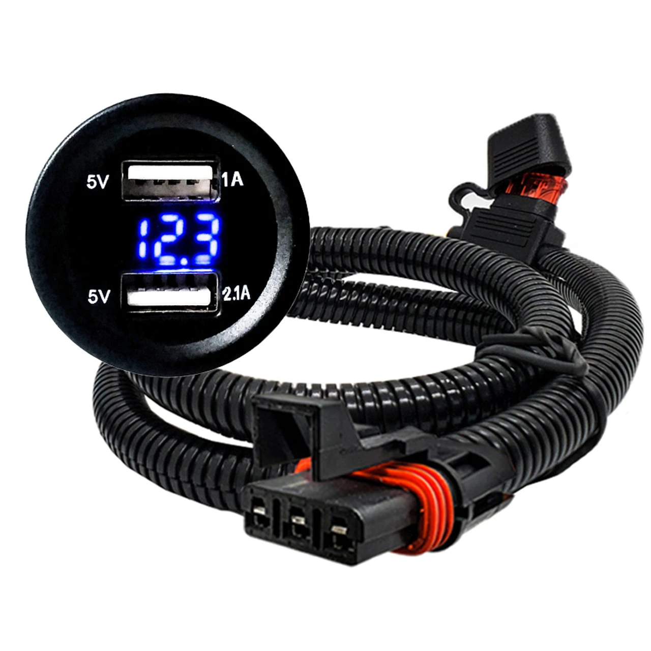 OZ-USA Plug and play Pulse power bus bar plug wire harness with dual USB charging port and digital voltage meter compatible with 2018- 2023 Polaris Ranger XP 1000 Pulse Plugs, RZR RS1/ Pro Pulse Plugs, 2019-2023 Polaris General 1000 Pulse Plugs.