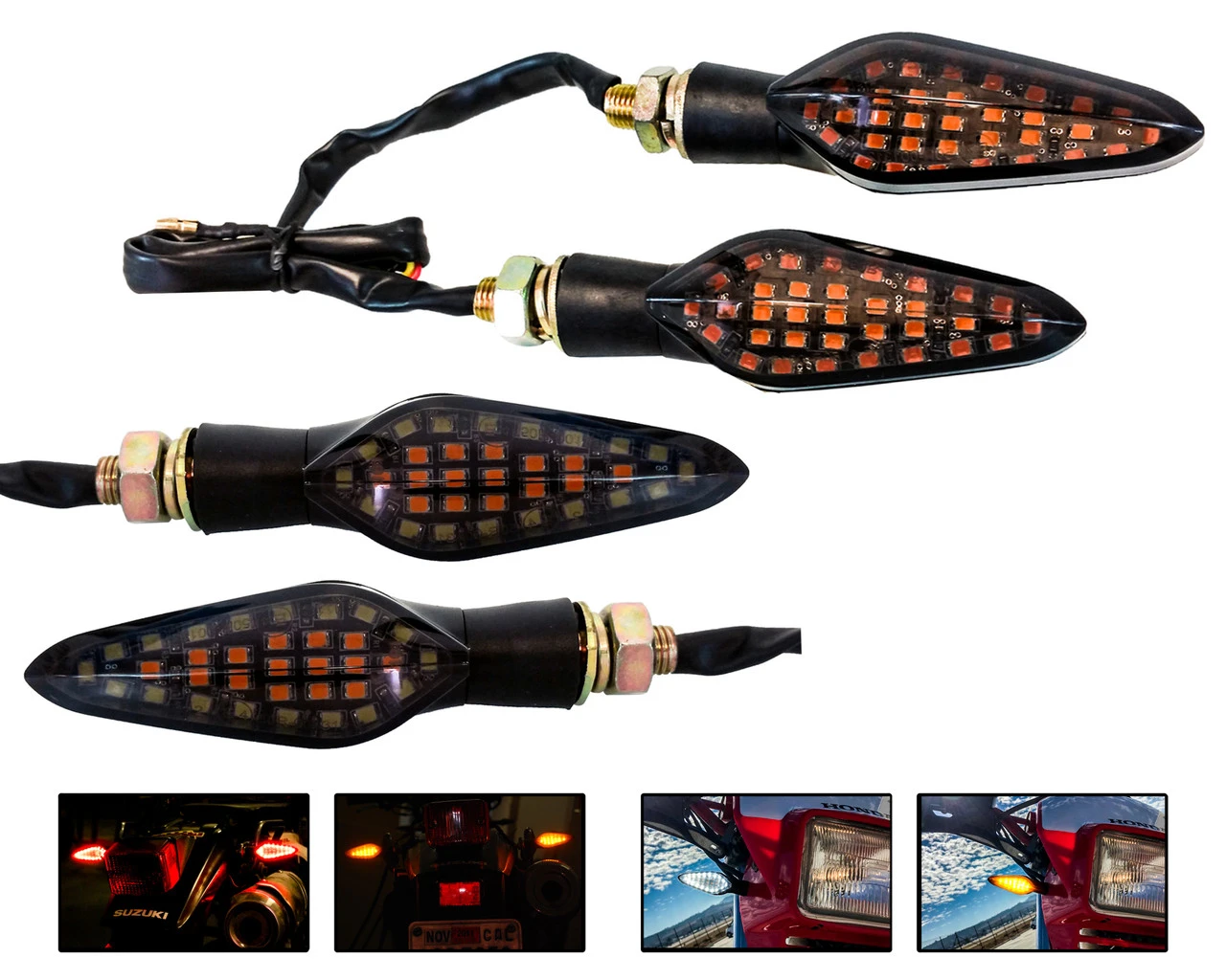 - 4 pcs. OZ-USA® Front White/Amber and Rear Red/Amber Dual Intensity LED Motorcycle Running Lights Turn Signals.