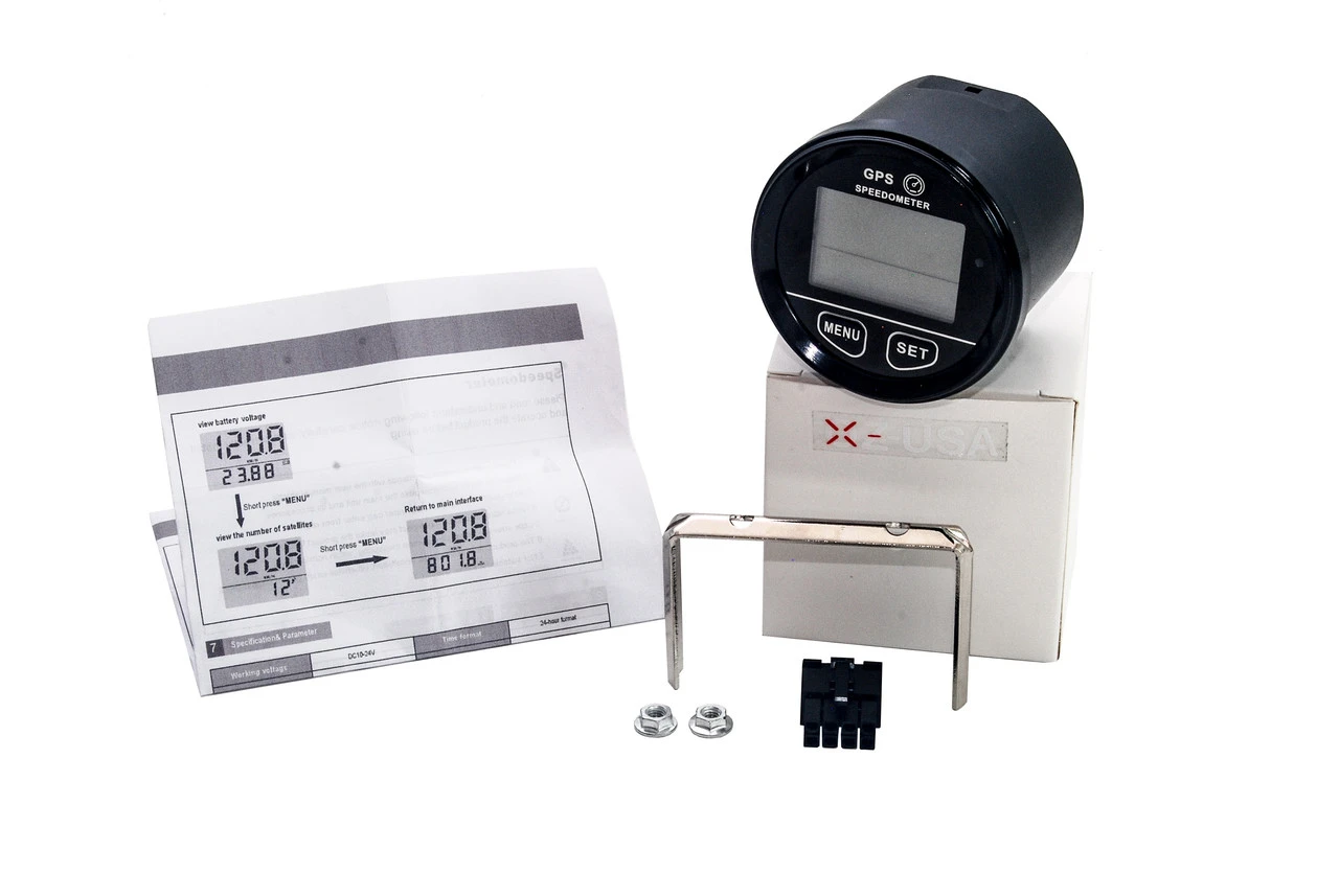 - Back-lit Digital Mini 60mm / 2.4″ GPS Speedometer. Great for Auto, truck, ATV / UTV, Motorcycle or marine applications