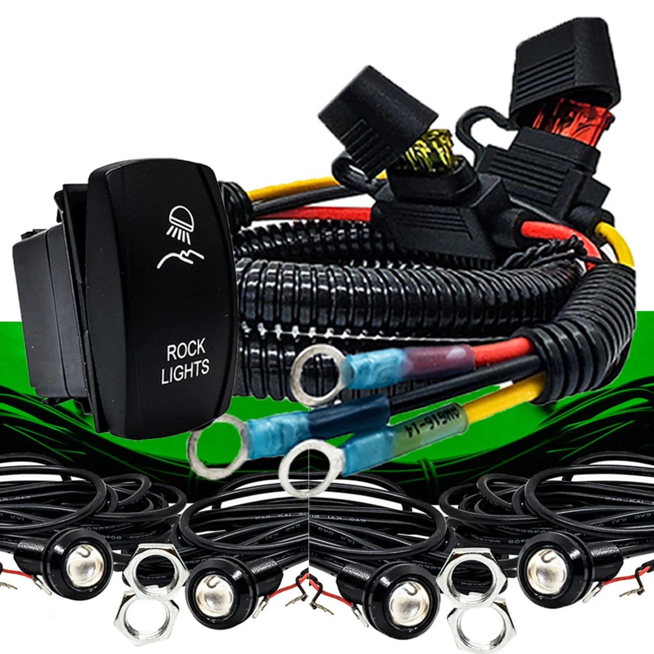 - Easy installation. Plugs in directly to your factory power bus bar distribution block. Combine the rock lights wire using the provided terminal spades and plug in the rock light wires to the back of the rocker switch