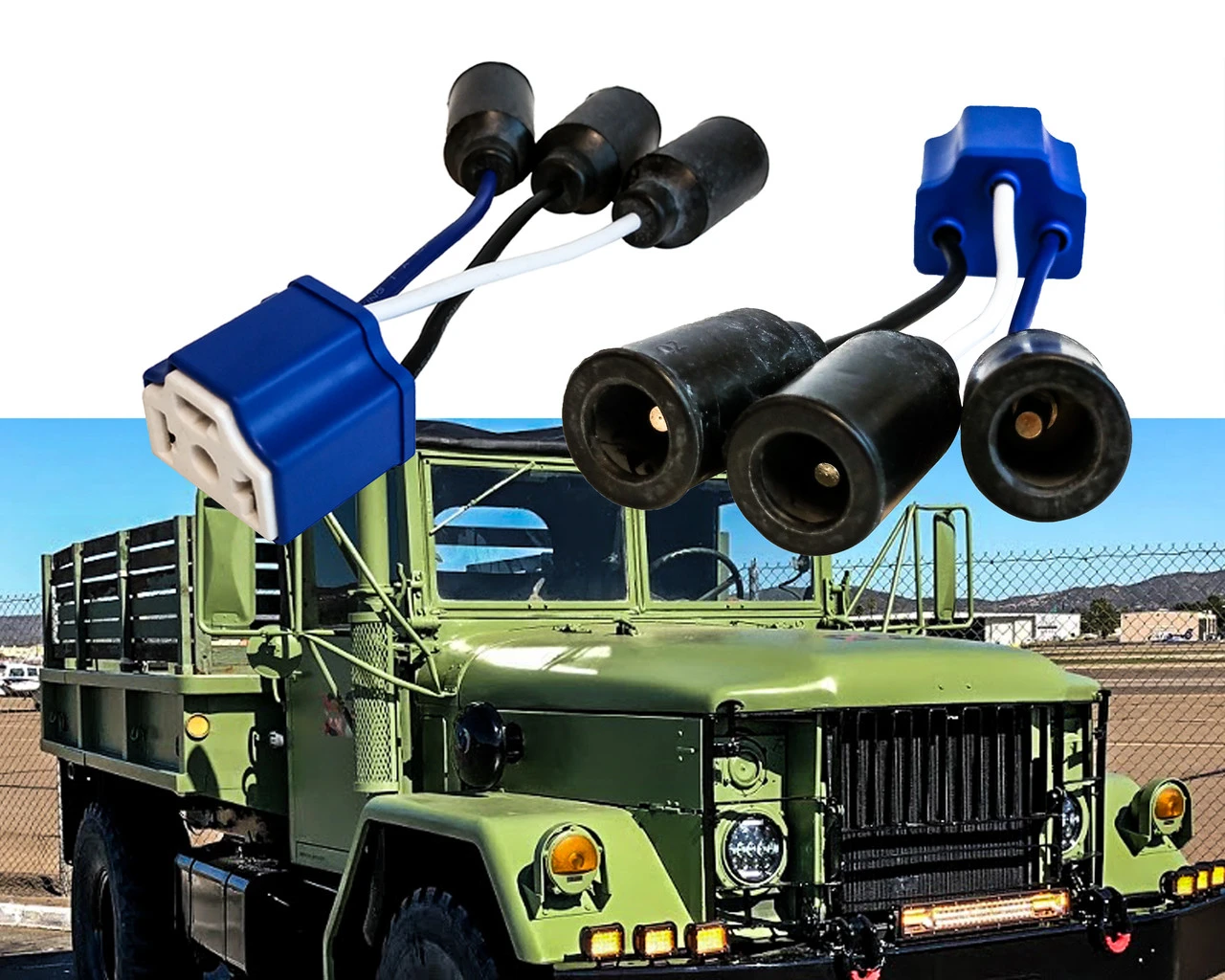 Converts H4 Headlight plug to military rubber connectors (Female end.)