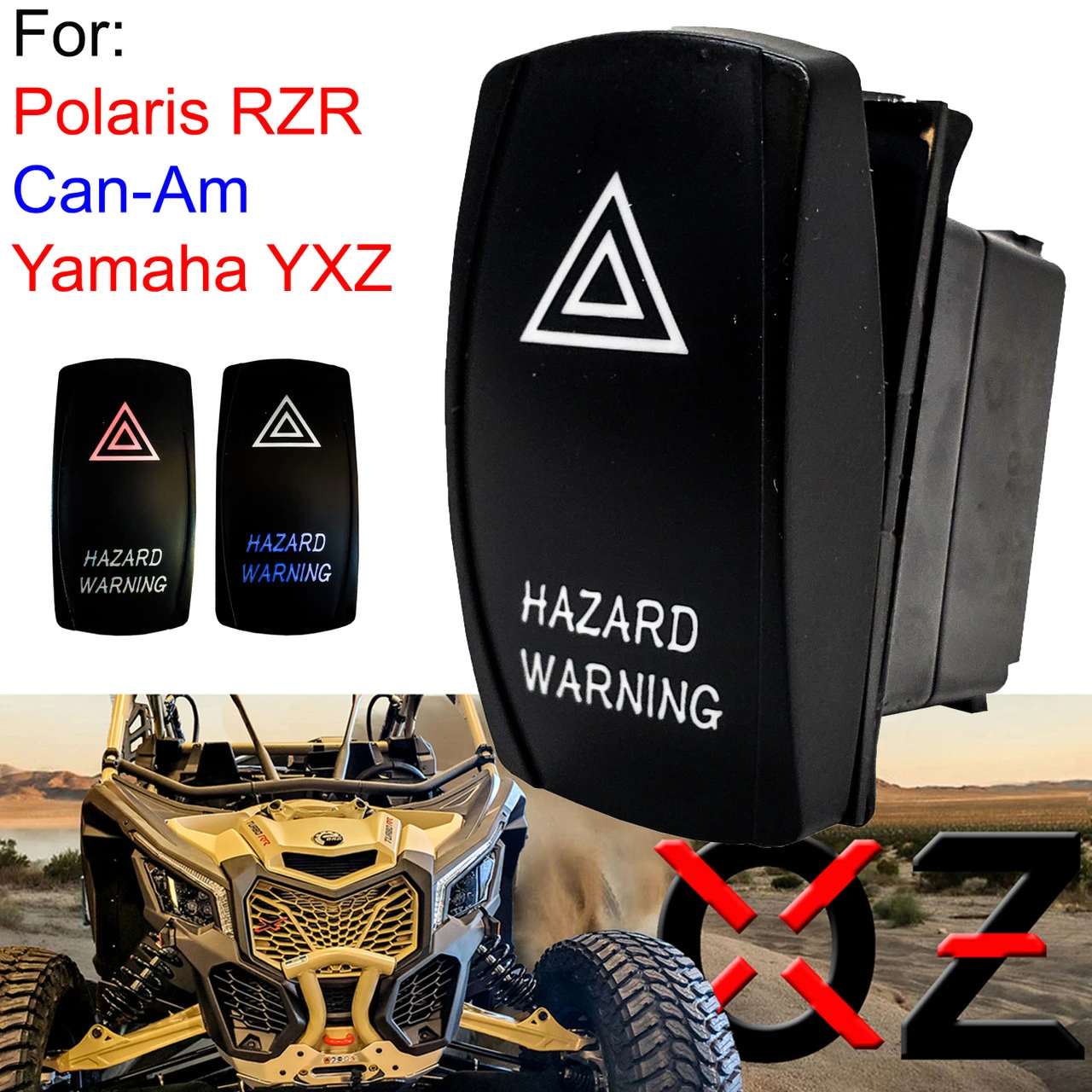 Introducing the OZ-USA High-Quality 4-Pin SPST Hazard Warning Light Rocker Switch, a versatile and reliable switch designed for a wide range of off-road vehicles, UTVs, trucks, RVs, side by sides, marine vessels, and heavy equipment vehicles. This 4-Pin SPST Hazard Warning Light Rocker Switch is specifically designed for turning On/Off the hazard lights. It does not have a flashing or strobe function. It provides a reliable and convenient way to control the hazard lights in your vehicle. Designed for compatibility, this rocker switch is compatible with the factory dash panel switch for all Polaris RZR models, Yamaha YXZ, and Can-Am models. It seamlessly integrates into your vehicle’s existing switch panel, providing a seamless and professional installation.