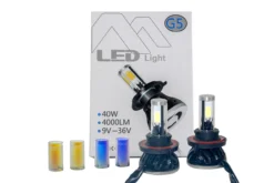 H13 Hi/Lo Cree LED Headlight Kit By OZ-USA® 40W 4-Sided Head Light Dual Beam 4000LM Xenon White 6000K . Changeable Yellow & Blue Glass Tubes Included.