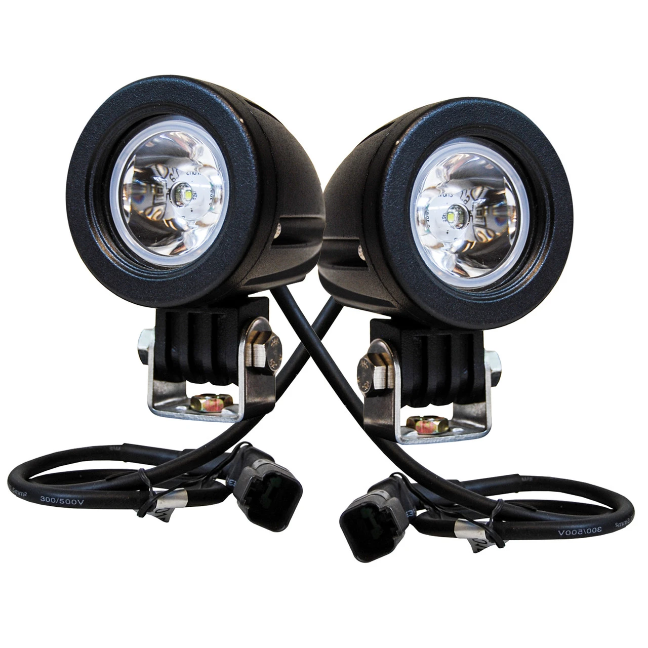 Our mini trail LED lights are the best auxiliary lights for your motorcycle. Compact design, high light output, and low power draw make them perfect for all kinds of motorcycles including dirt bikes, trail bikes, dual-sport adventure motorcycles, street motorcycles, cruisers, racers even ATVs. Standard halogen motorcycle headlight bulbs will use 35-55 watts. Our mini trail lights only use 20w per pair but generate 3-4 times more light than your standard halogen headlights. The compact design is roughly the same size as motorcycle turn signals. They are perfect to install on various locations on your bike including, forks, turn signal brackets, crash bars, and fairings. A low power draw makes it compatible with all motorcycle stators without draining your battery. Ultra-bright LEDs will also increase your visibility to others during the daytime to keep you safer.