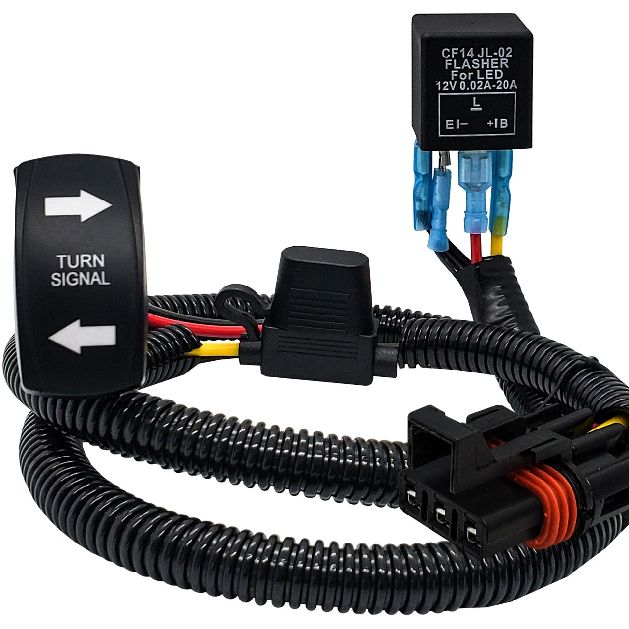 - Turn Signal etched ON/OFF/ON Rocker switch is included. Blue LED backlit. 20A OZ-USA Relay switch.