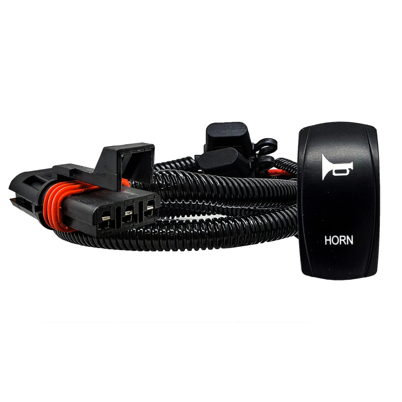 OZ-USA Plug and play power bus bar plug wire kit with momentary On/Off Rocker Switch for HORN compatible with Pulse Busbar 2018 – 2023 Polaris Ranger XP 1000 Pulse Plugs, RZR RS1/ Pro Pulse Plugs, 2019-2023 Polaris General 1000 Pulse Plugs. 14 AWG wire with pre-installed plugs for use with the 4-Pin Fan rocker switch. The momentary On/Off Horn rocker switch is compatible with the Polaris factory switch panel. Simply plug in your HORN wire to the rocker switch.