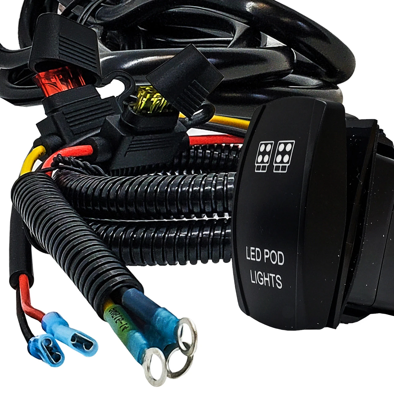 - On/Off LED Pod Lights rocker switch is included. Blue LED backlit. 20 Amp 12-Volt 4-PIN SPST Rocker Switch.