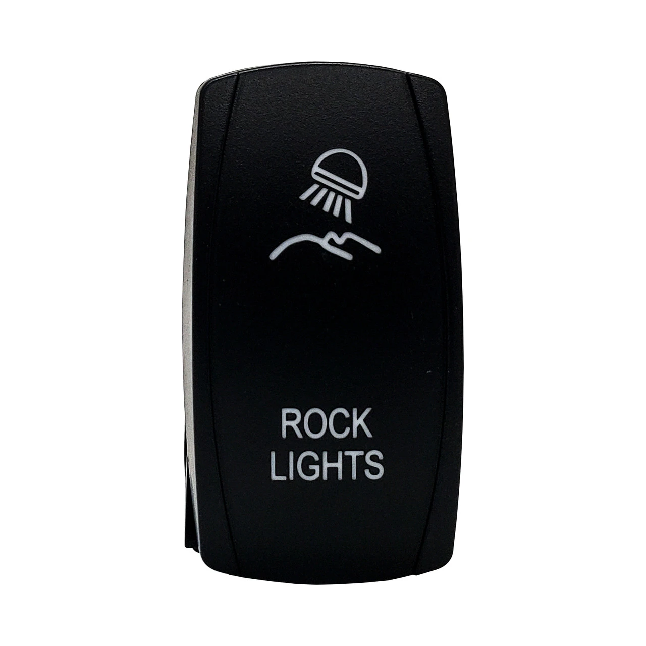 OZ-USA High-quality SPST 5-Pin ROCK LIGHTS rocker switch for all types of off-road vehicles, UTV, Trucks, RVs, side by sides, marine vessels, and heavy equipment vehicles. It has a built-in LED to illuminate the front surface of the switch. All icons are laser-etched engraved onto the surface of the switch which will not fade easily.