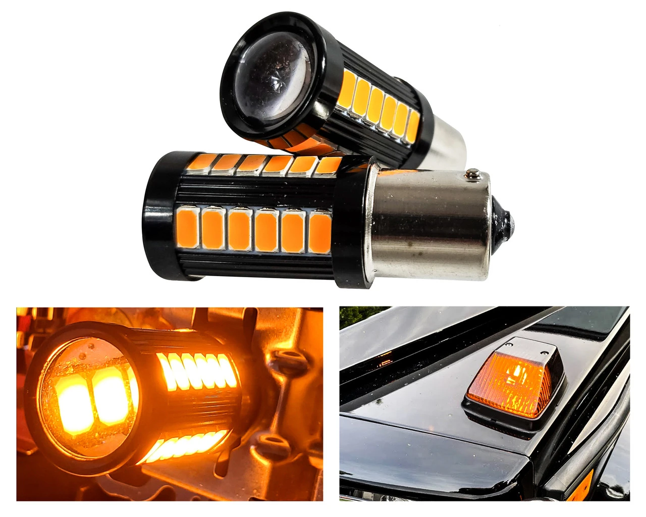 - Pack of 2 error-free amber LED 1156 bulb base single contact with projector lens.