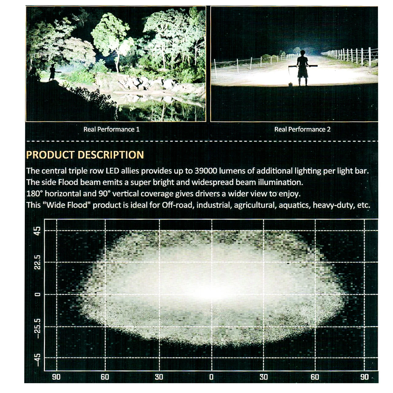 - Beam Pattern: Spot 30° Beam + Wide Angle Flood Beam(110° Horizontal + 90° Vertical)